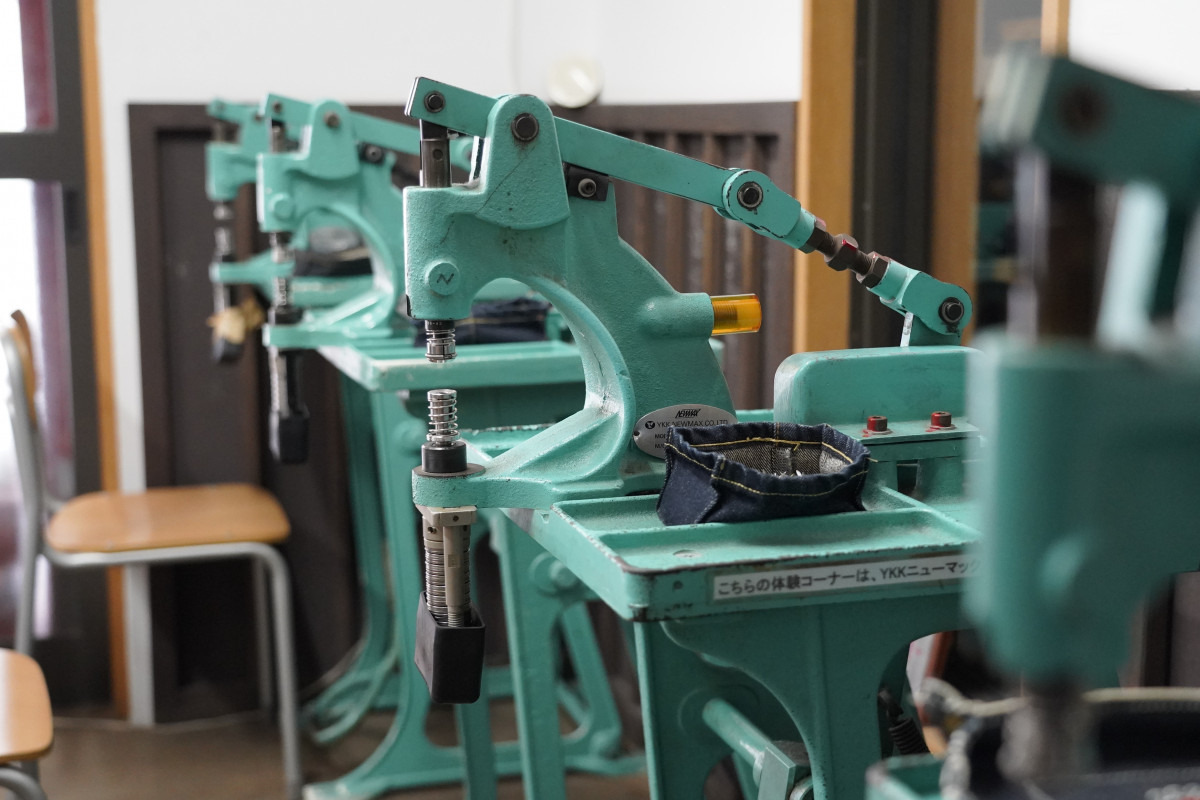 今や岡山・児島観光の目的のひとつにもなっているジーンズ作り体験。「時間やお金がかかるオーダージーンズより、もう少し気軽にジーンズ作りができるサービスがあればと思って、2010年から始めました」と大島さん。自分に合うサイズのジーンズに、好きなボタンやリベットなどを選んで自ら取り付け、1時間程で完成。当日持ち帰ることもできるジーンズ作りの体験は他にないアイデアで話題に。「実はトッピングなどを自由に選べるセルフうどんをヒントにしたんです」と大島さんは笑います。意外なところから着想を得た体験事業はその斬新さもあって口コミで注目を集め、さらなる観光客の増加に繋がりました。2021年2月には「ジーンズ作り体験」に関する特許も取得。倉敷・児島の観光客誘致の一翼を担っています。