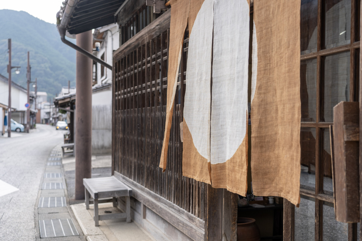 現在、勝山町並み保存地区では約800メートルの通りに、商家・民家をあわせて100枚以上の暖簾がかけられています。色とりどりの暖簾は何気なくかけられているように見えて、実は色や図案が重ならないよう加納さんがデザインの時点で調整しており、一つひとつの暖簾がバランスよく自然と町並みになじんでいます。また、加納さんは暖簾の制作において実用性や使い勝手についても重視。そのため、化学染料も積極的に取り入れます。「最初はやっぱり草木染の暖簾にしたいという方が多いのですが、草木染は紫外線に非常に弱く、屋外にかける暖簾にはおすすめできないんです。本当の意味で使ってくれる人の役に立つものを提案していきたいですね」と語ってくれました。職人の仕事に徹した実用的で真摯なものづくりと高いデザイン性を兼ね備えた美しい暖簾。その魅力に町の人たちが共感し、生まれた「のれんの町」。「自分が制作できる間は、できる限り思いを布に伝えていきたいんです」と今後の活動にも意欲的です。今日も勝山の町並みでは、暖簾が静かに揺れながら家々の想いを伝えています。