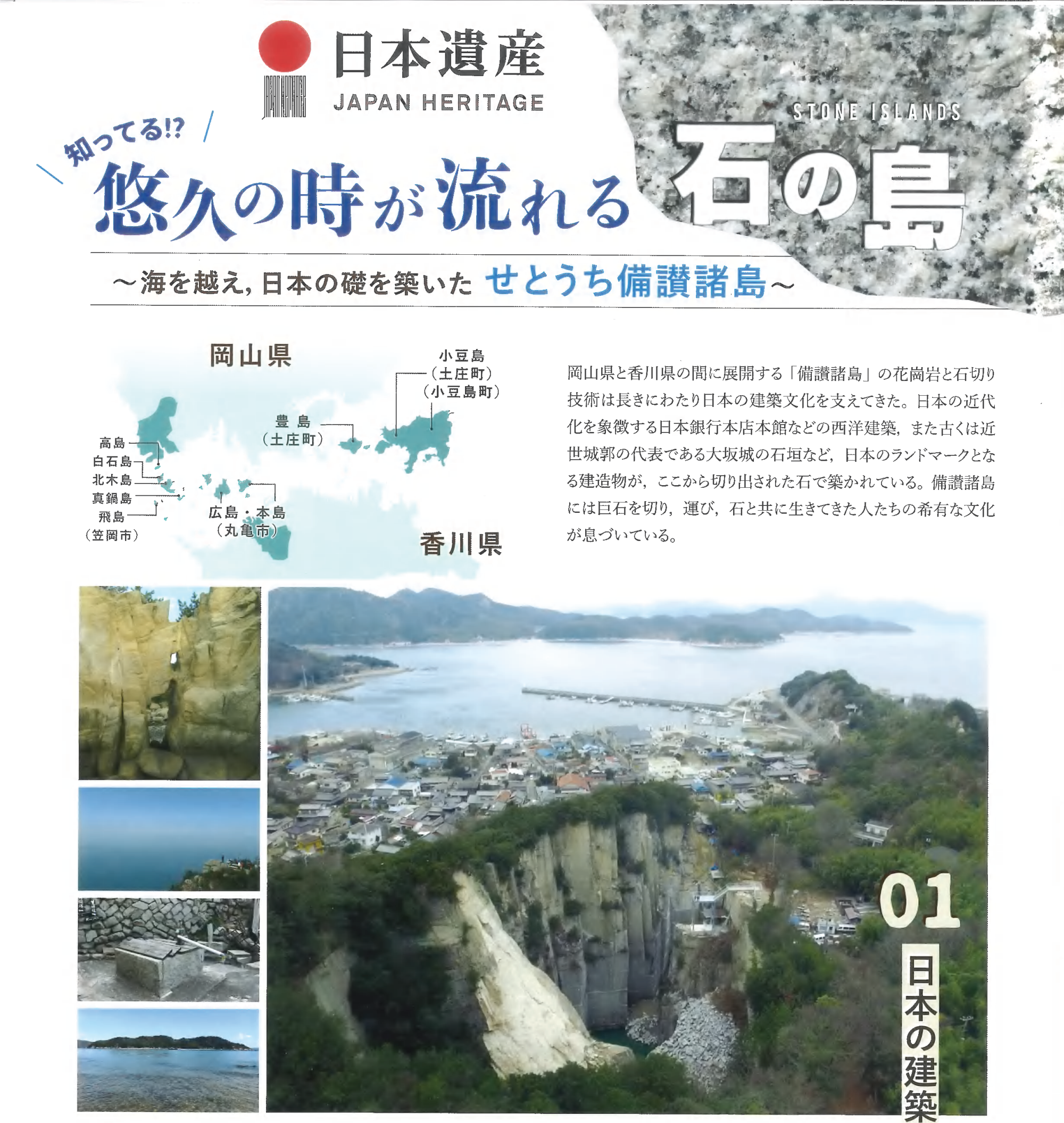 令和元年(2019年)5月、北木島を含む備讃諸島の石切りストーリー「知ってる!? 悠久の時が流れる石の島~海を越え、日本の礎を築いた せとうち備讃諸島~」が、日本遺産に認定されました。構成文化財には、「北木石の丁場(採石場)」や「北木島石切唄」などが含まれ、鶴田さんのこれまでの取組が大きく評価された形となりました。「展望台が日本遺産認定のきっかけになりました。父は“我々は猿山の猿ではない”と展望台の建設には強く反対しており、一年もの間口をきいてくれませんでした。しかし、日本遺産のことは気にかけてくれていたようで、認定されたとき“これで安心して死ねる”とこぼしたことは心に残っています。父が亡くなったのは新聞発表の1か月後のことです」。鶴田さんは、当時をそう振り返ります。
