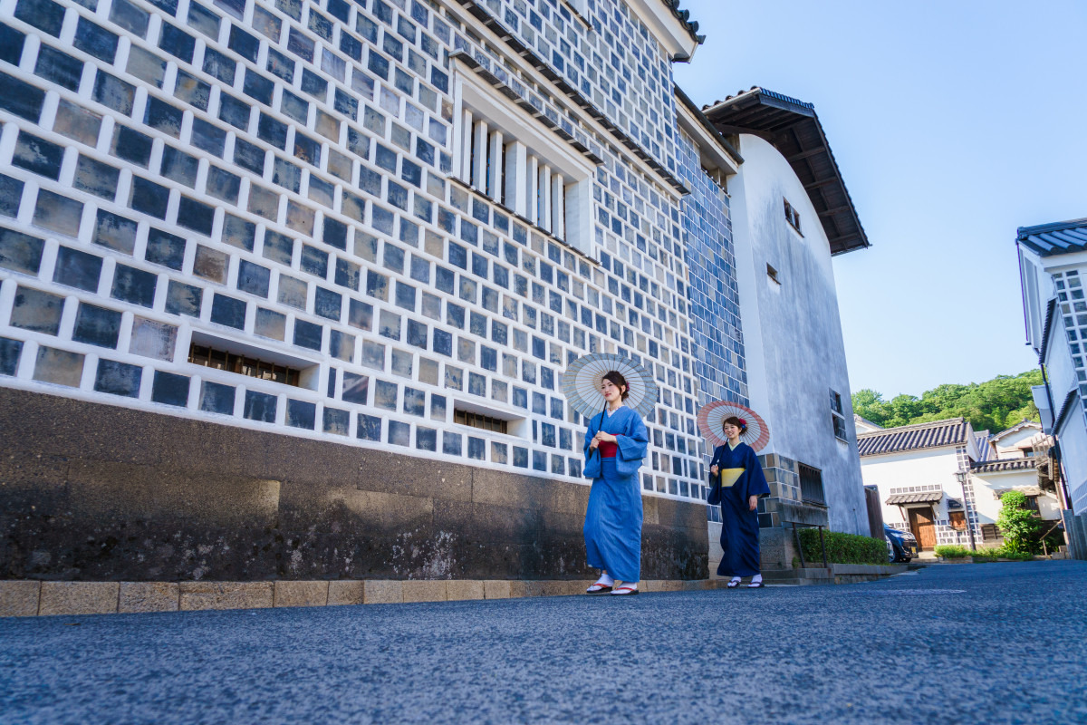 倉敷市児島は、国産ジーンズ発祥の地で「ジャパンデニム」の聖地と呼ばれています。この児島エリアで開発されたデニムを生地に使用した「デニム着物」が今、観光客に大人気です。インディゴブルーの美しいスタンダードなタイプから、市松模様や花柄などがデザインされたものまで種類も豊富。倉敷駅前や美観地区でレンタルできるので、着用して倉敷のまちを散策してみては。
