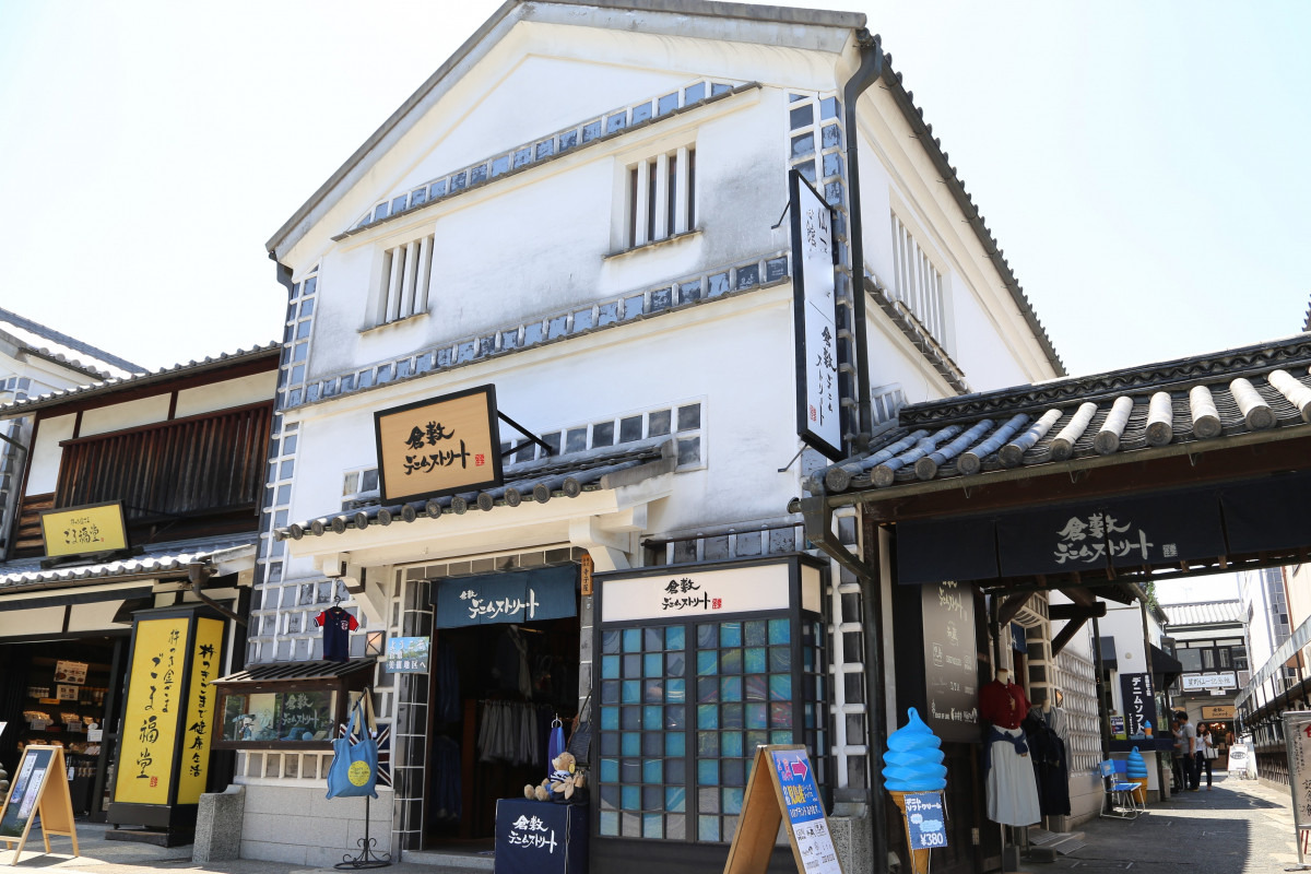 倉敷の児島地区が国産ジーンズ発祥の地であることにちなみ、児島産のデニム製品や、デニム製の小物雑貨や装飾品などを取りそろえています。テイクアウトコーナーでは、ラムネ味の「デニムソフト」、「デニムまん」など、デニムにちなんで青系の色に仕上げた軽食を販売しています。