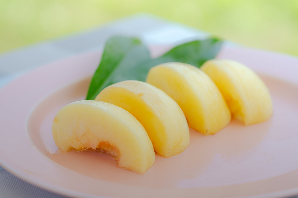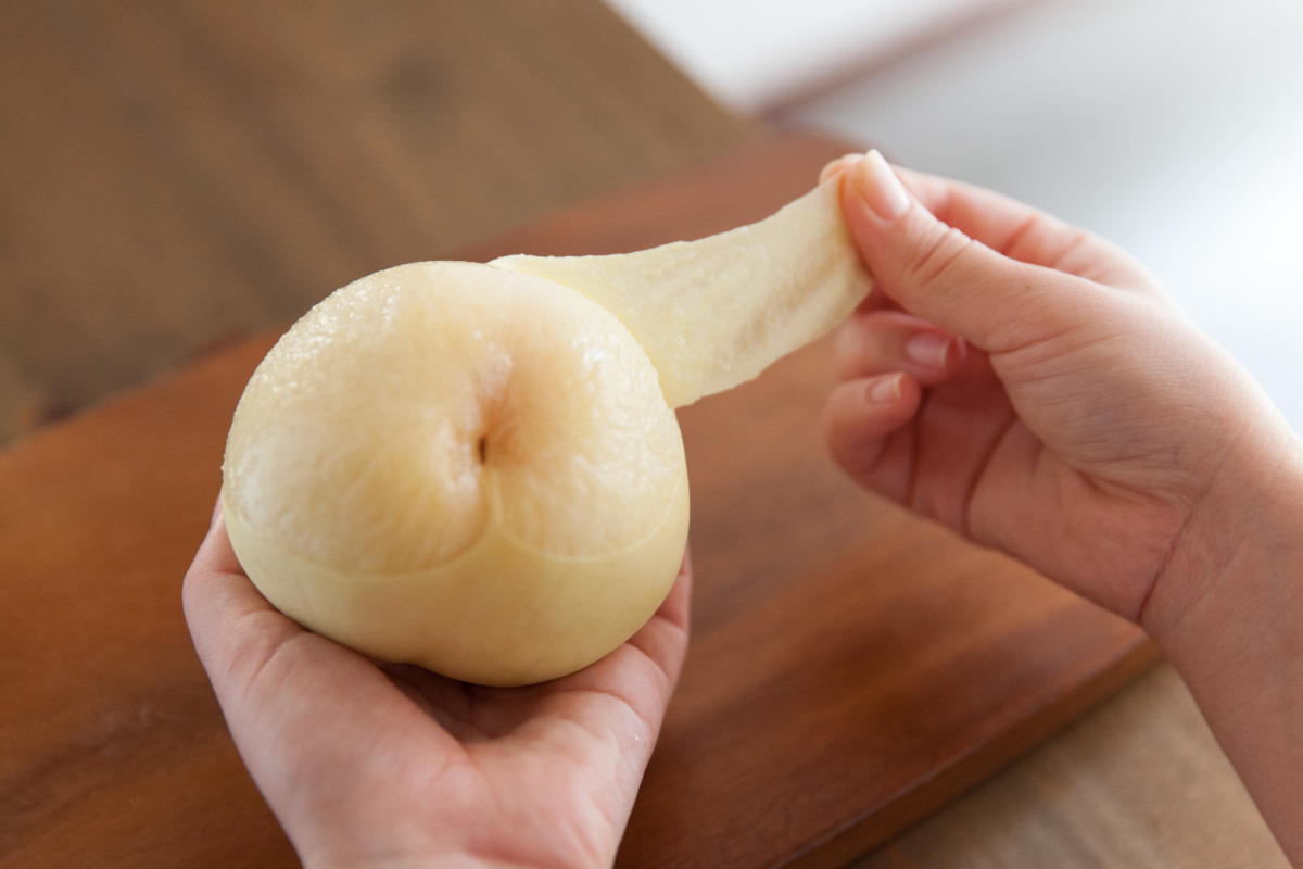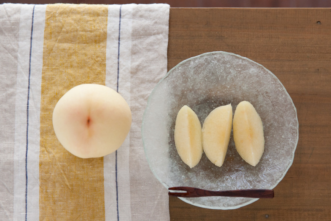 桃の保存は風通しの良い常温の場所が適しており、食べる30~60分前に冷蔵庫に入れるのがおすすめです。食べ頃は、青みが抜け、桃の甘い香りが強く感じられるようになったら。手で皮がすーっとむけるぐらいの柔らかさが最も美味しい食べ頃です。