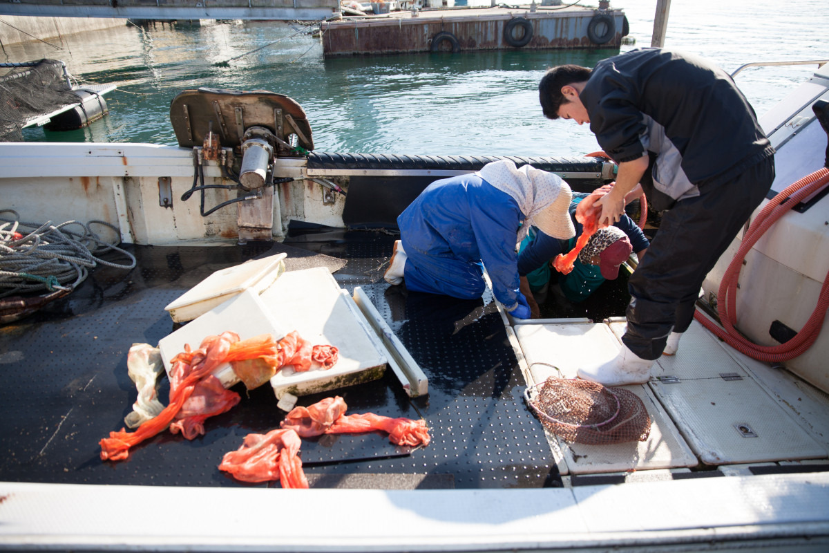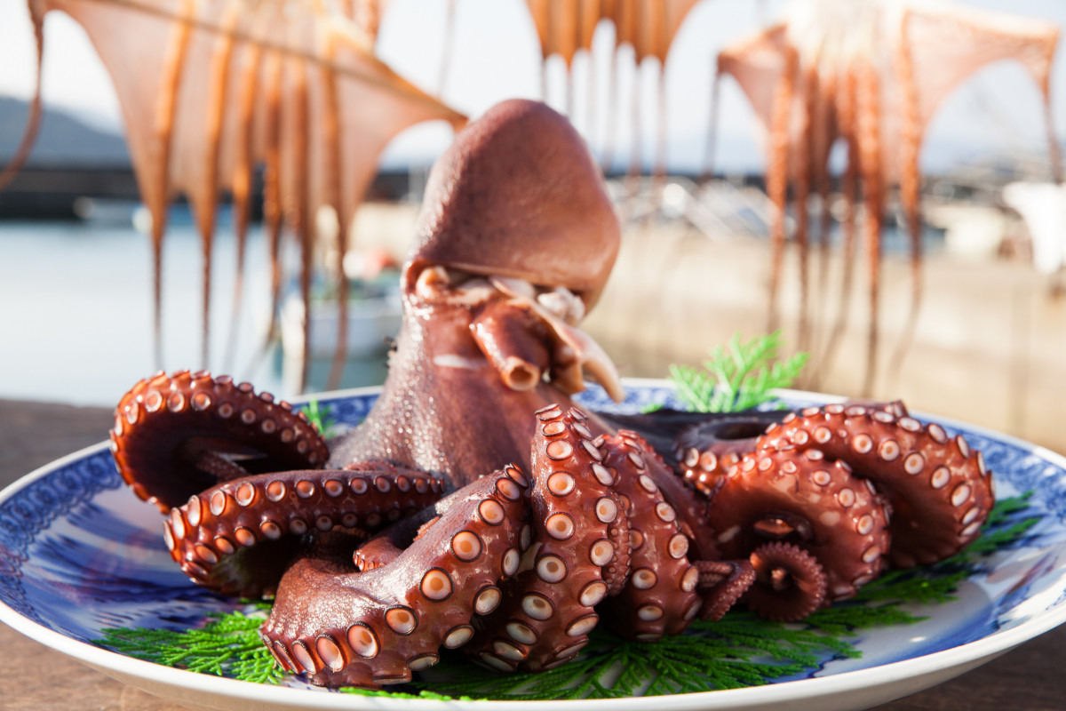 その漁場である下津井は、岡山県と香川県との間の狭まった海域。潮の流れが速いこの海域で育つタコは、潮に流されまいと岩場にしがみつくため足は太く短くなり、身がしまることで味が凝縮されるのだそう。プリプリとした食感と噛むほどに増す旨み。その味わいは、「一年のうち、おいしくない時期は三日だけ」とも言われるほどです。