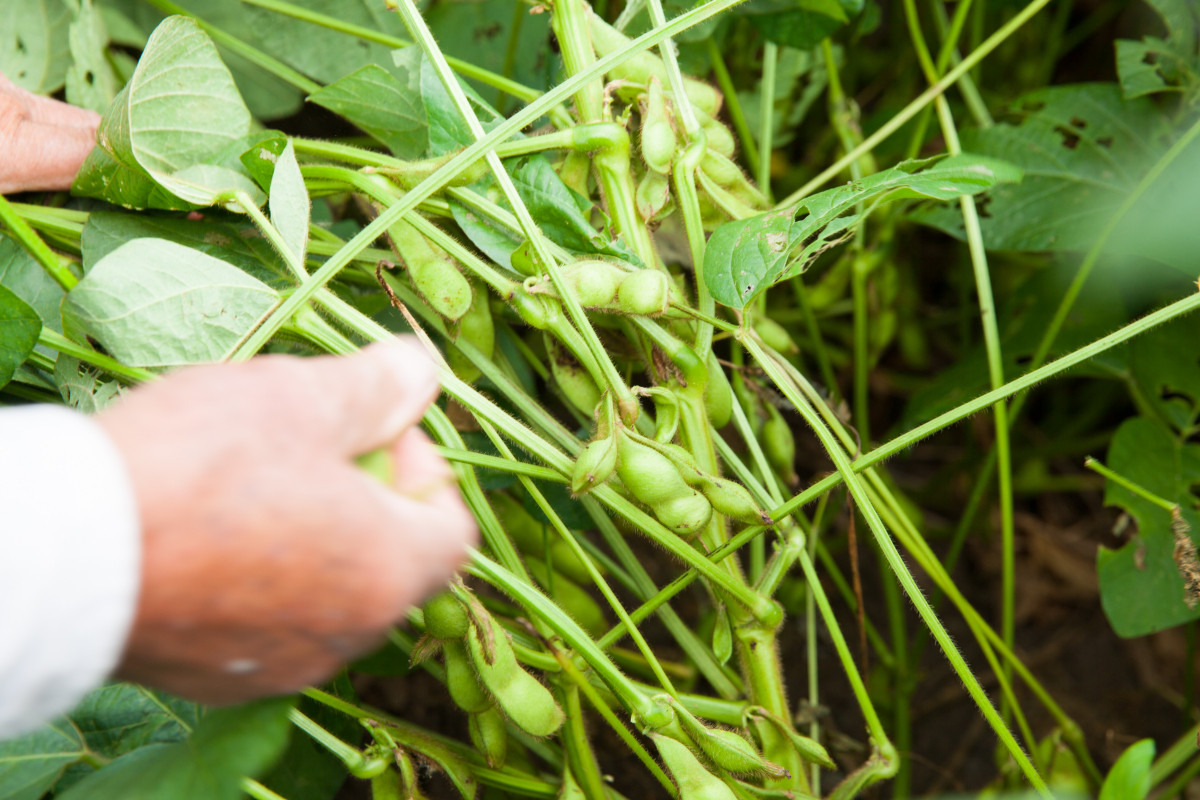 一般的な大豆とサヤのつき方が異なる黒大豆は、コンバインなどの機械導入が難しい品種。そのため収穫時は、しっかりと実の詰まったサヤだけを選び、ひとつひとつ手で摘むのだそう。