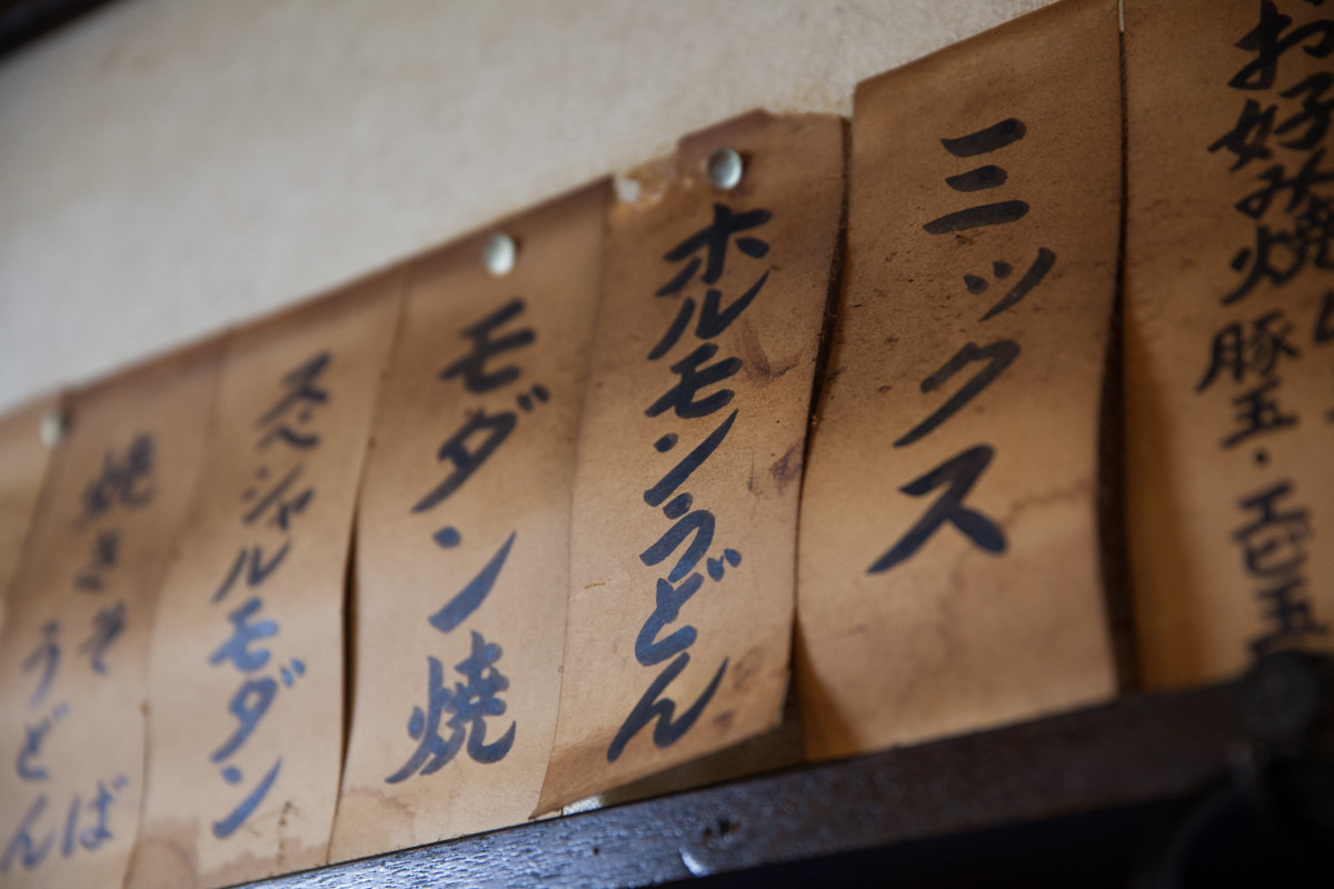 『お好み焼き 三枝』は、開店当初から「ホルモンうどん」をメニューに連ねている一軒。「市内の食肉処理場で経験を積んだ職人が厳選した、黒毛和牛のホルモンのみを使用している」といいます。
