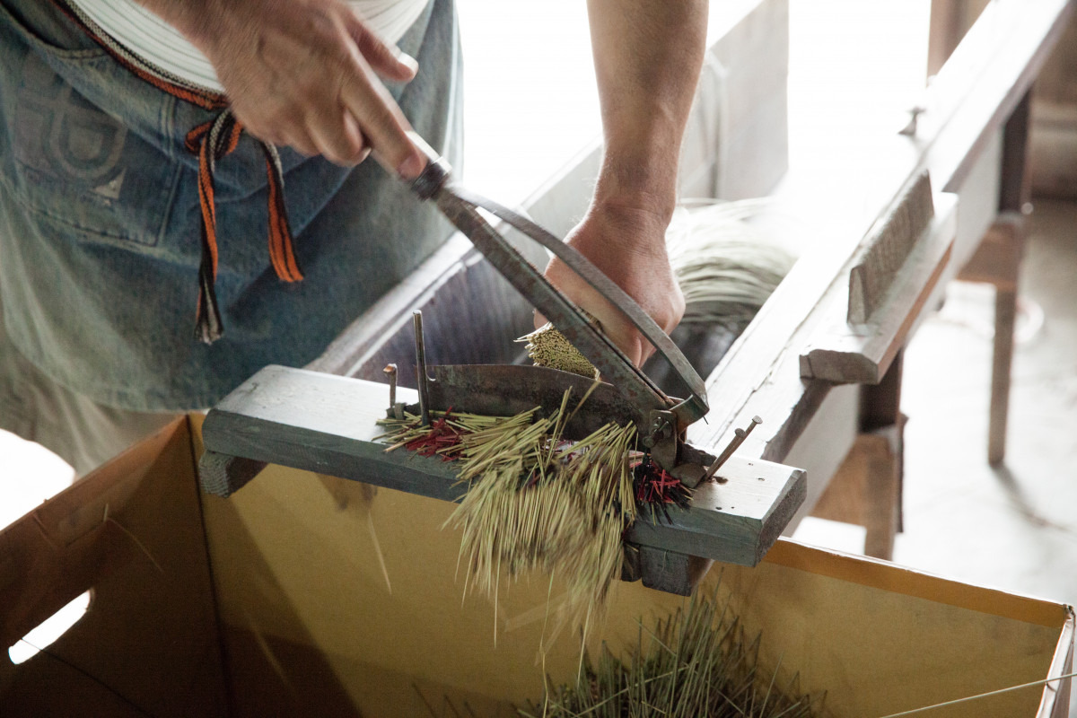 岡山でイ草製品を手掛ける業者の多くは、早島や倉敷を中心とする県南部に集まっています。近年、量的には少なくなったものの、加工技術の高さは全国でも有名です。丹念に織り上げられた岡山のイ草製品は、その伝統の技法を今に伝えています。