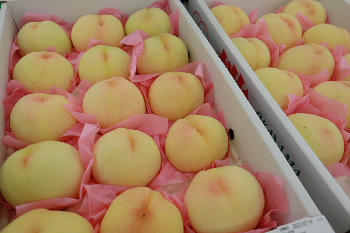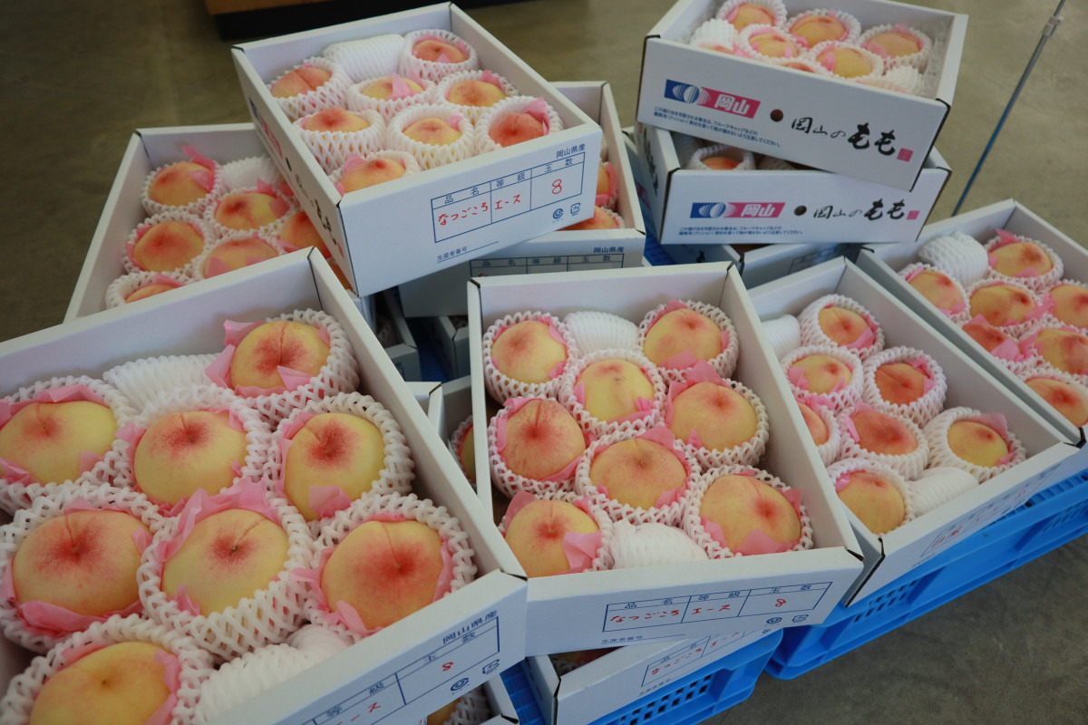 桃のシーズンには岡山県内の産直市や道の駅、JAの農産物直売所などに採れたての白桃が並びます。少数から購入できるものもあり、贈答用よりも気軽に買える価格なので、ぜひ立ち寄ってみてください。
