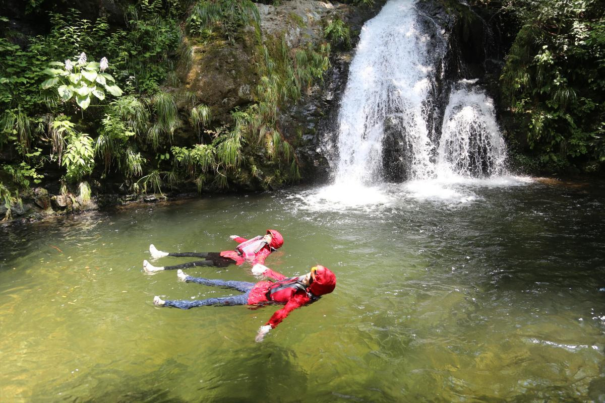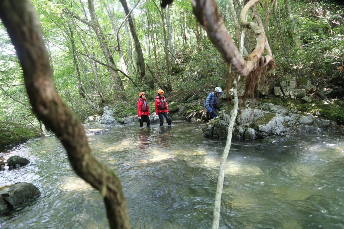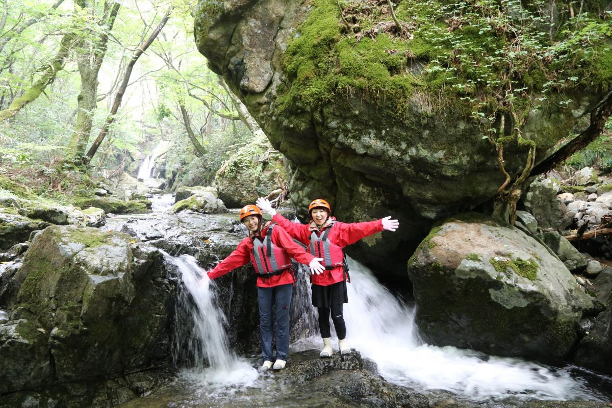 エコツーリズムの達人ガイドが案内する、真庭市蒜山・山乗(やまのり)渓谷のリバートレッキング。巨岩に囲まれた山乗渓谷は、大小20~30もの滝が連なり、初心者から上級者まで幅広く楽しめるのが魅力。経験豊かなガイドと一緒に、地元の人も足を踏み入れない隠れスポットを巡ろう!