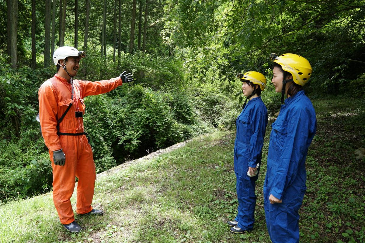岡山県北西部の新見エリアには、鍾乳洞や洞窟があちこちに点在しています。中でも、全く人工的な設備がつけられておらず、自然そのままの洞窟を体験(ケイビング)することができる「風戸穴(かざとのあな)」をガイドさんの案内で探検します。