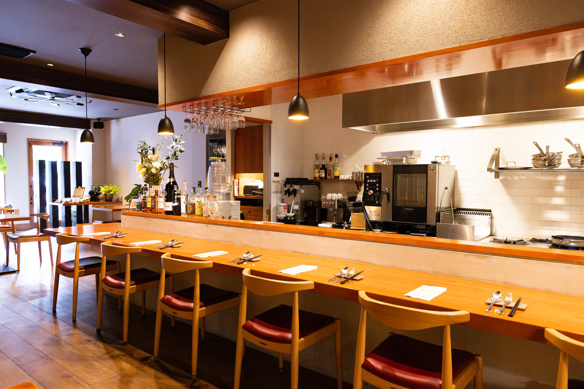 オープンキッチンに向かうカウンターで、北村シェフのライブ感ある調理を眺めながらぜひ味わってみてください。