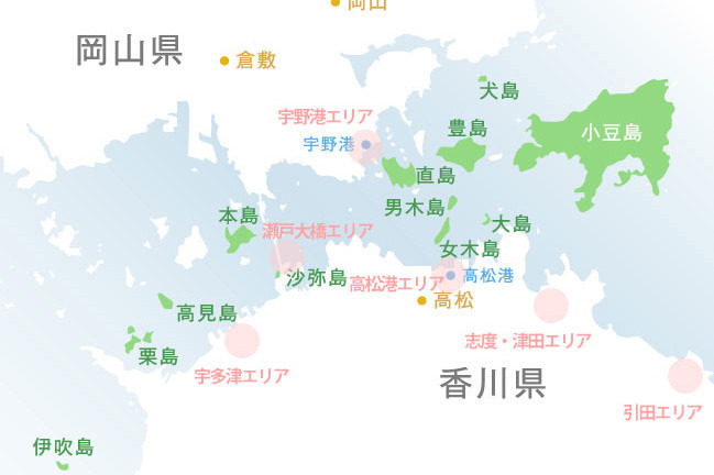 [香川県] 直島、豊島、女木島、男木島、小豆島、大島、高松港エリア