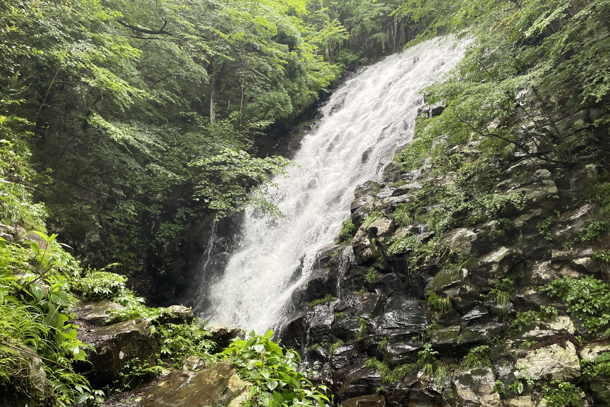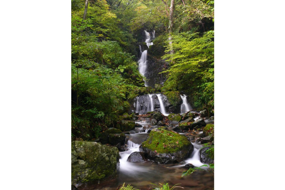全長400mの遊歩道を歩いた先にそびえる落差20mの滝です。山水画を思わせるしっとりと落ち着いた風情の山乗渓谷にあり、天然の涼を感じられる癒しスポットとして人気。周辺のブナ林にはめずらしい野鳥、渓流にはヤマメなど川魚が生息しています。