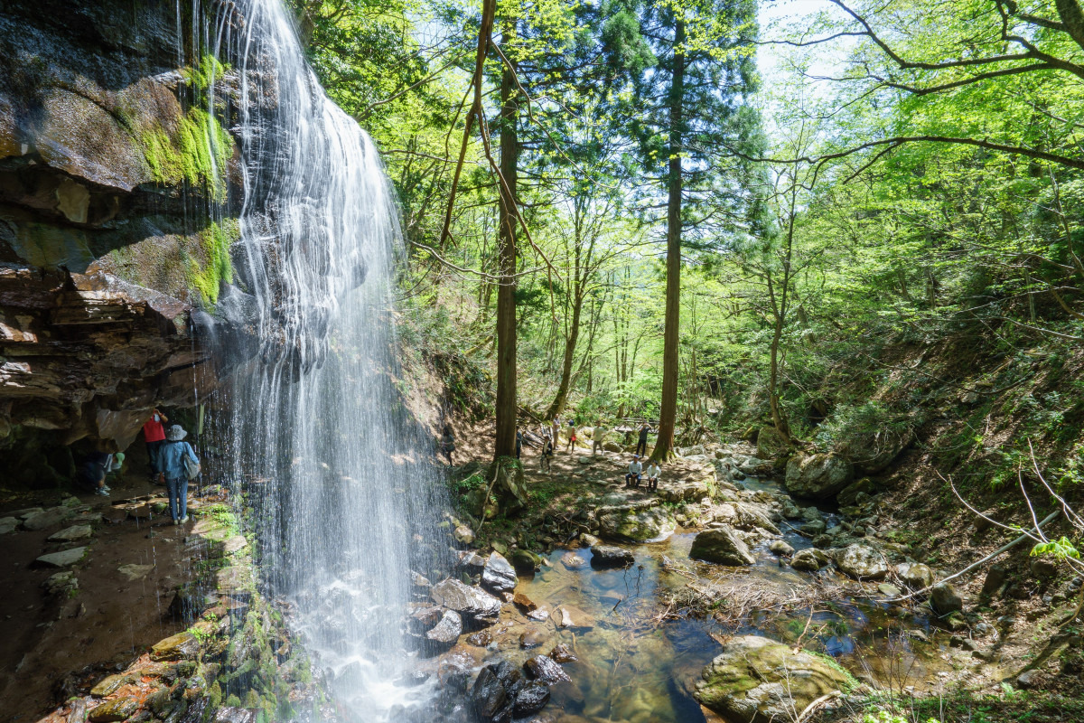 それぞれ滝つぼを持った一の滝、二の滝、三の滝と呼ばれる3つの滝で構成されており、異なった趣が楽しめます。滝の近くにある茶屋「もみじ亭」では夏場の流しそうめんが人気(2023年6月は土日、7・8月は毎日営業)。涼を求めて県外からも多くの人が訪れます。