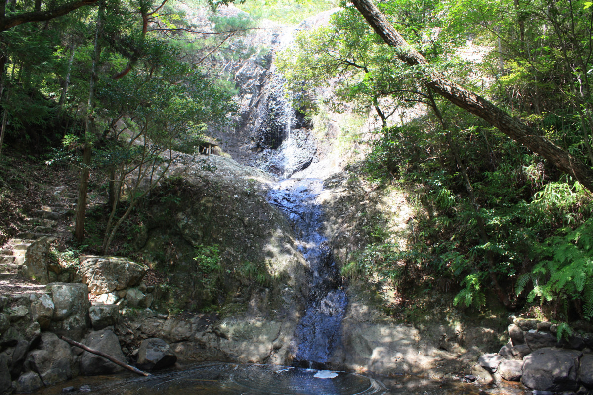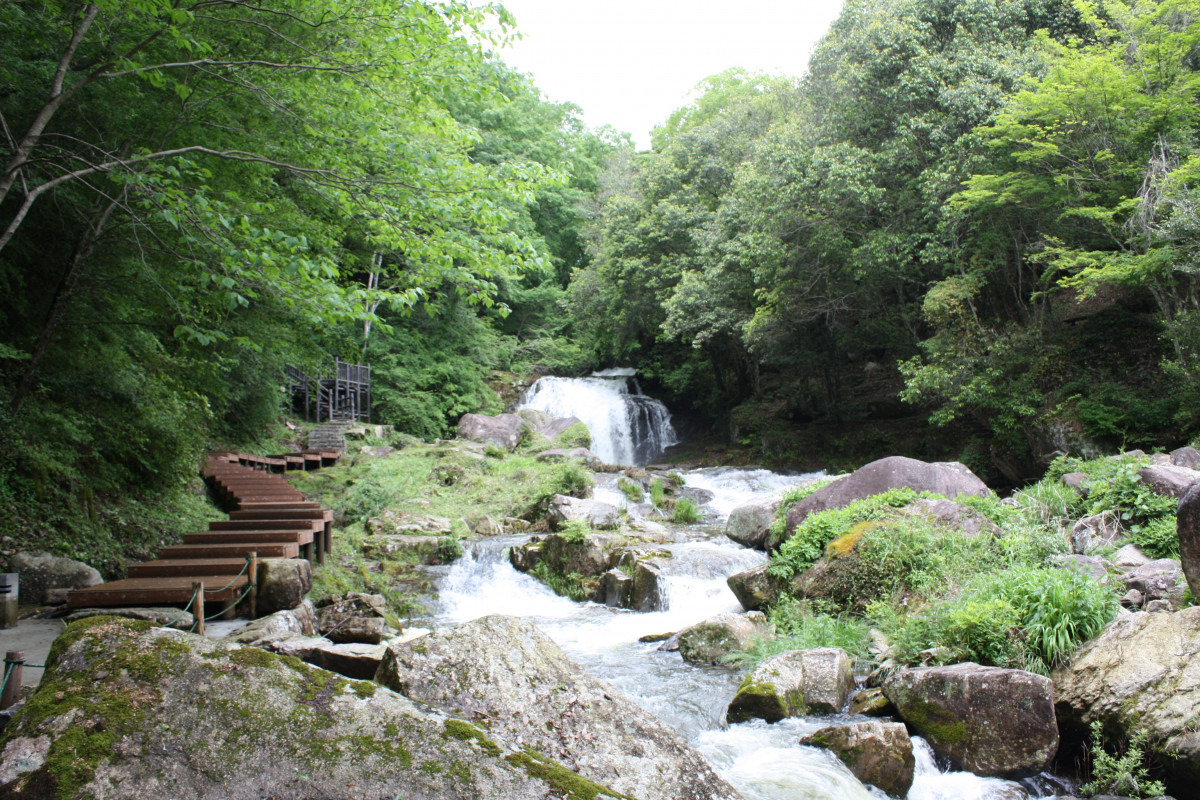 落差13m、幅5mの、大小2段から成る滝。滝の宮とも称される「天石門別(あまのいわとわけ)神社」の神域に位置しています。上の滝は雄滝(おんたき)、下の滝は雌滝(めんたき)と呼ばれ、古くから知られている名瀑です。