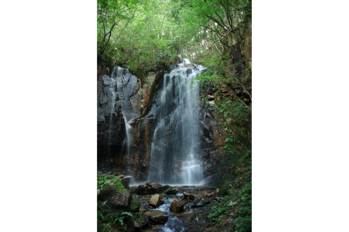 男滝(おんたき)とその下流にある女滝(めんたき)から構成。高さ約12m、幅約5mの男滝は、雨季にはその幅が約10mにもなります。滝壺の水は伏流水となって下流に注ぎ、下流にある高さ約7mの女滝も優美な姿を見せています。