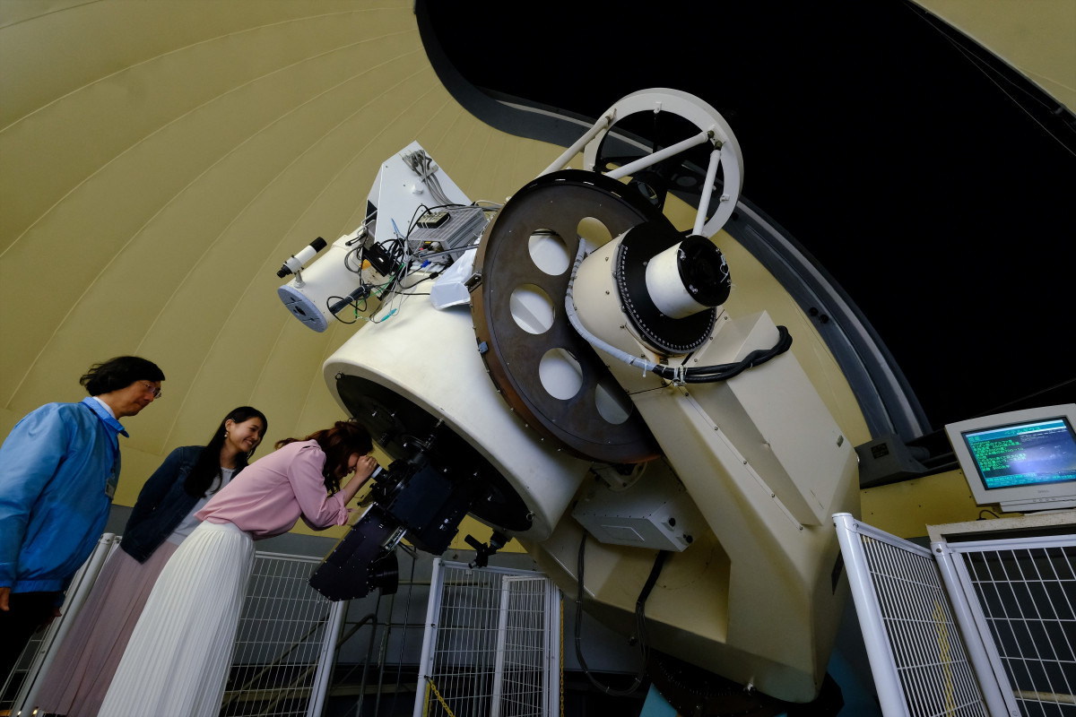 美星天文台職員の案内により、口径101cm反射望遠鏡でさまざまな天体を観望でき、夜間だけではなく、昼間でも望遠鏡により星を観望することができます。