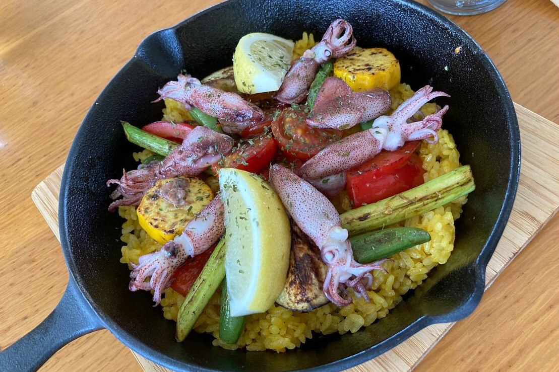 目の前の海は「唐琴の瀬戸」と呼ばれ、流れがとても速い海域になっており、カフェからは潮の流れる良い音を楽しめます。 牛窓カフェでは、地元の食材を使った地産地消に取り組んでいます。 牛窓・瀬戸内市産の食材を使ったランチがおすすめ。地元の魚介と野菜を使った「牛窓パエリア」や瀬戸内市の特産品であるマッシュルームをたっぷり使った「牛窓マッシュルームカレー」などのランチをあります。ランチにはサラダもついています。 ドリンクにも地元の食材を取り入れています。牛窓産のレモンとはちみつを使った「牛窓レモネード」がイチオシ。ドリンクメニューはテイクアウトもできるので、島の散策にももってこいです。 周辺の観光情報の提供もしていますので、前島への島旅の際は是非お立ち寄りください。
