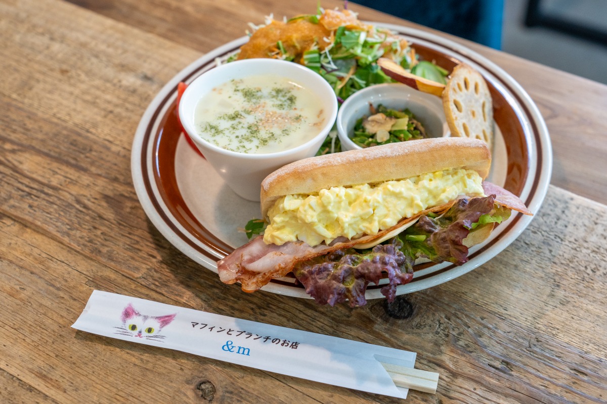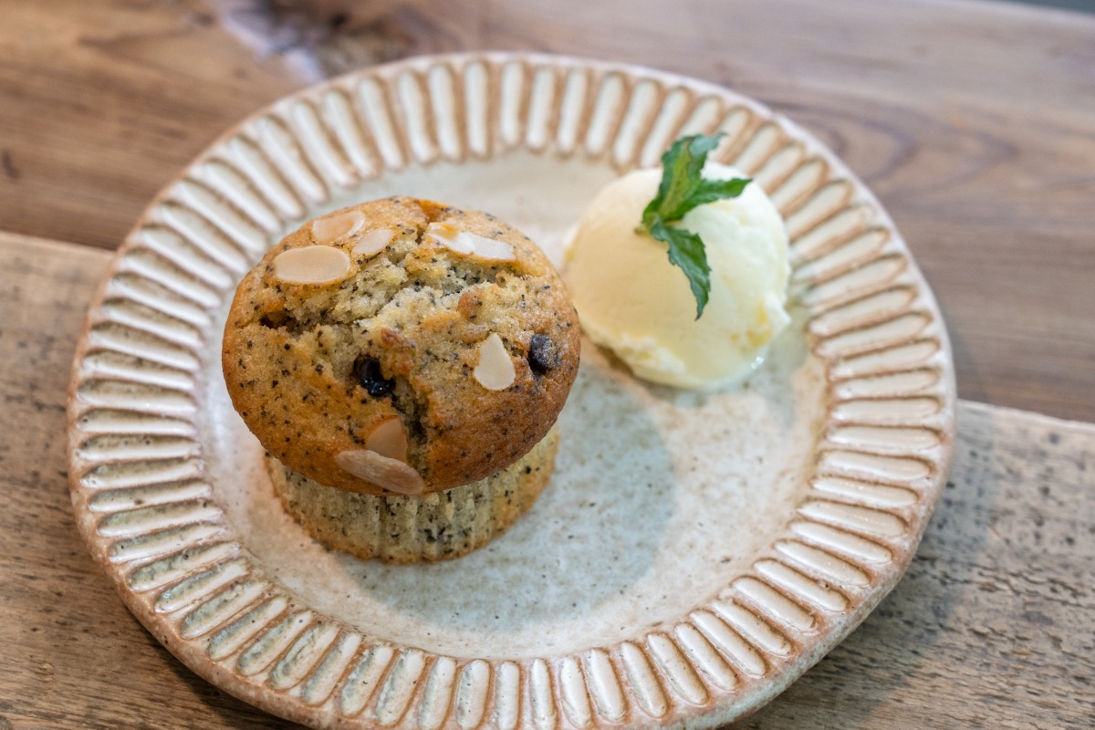 湯郷温泉街にあるマフィンとブランチの店。津山産小麦ふくほのかに塩麹とヨーグルトを加え、コクのある味わいに仕上げた10種類以上のマフィンや、たまごサンドやからあげサンド、エビフライ付きのクロワッサンといったブランチメニューを提供しています。イートインだけでなくテイクアウトも可能。