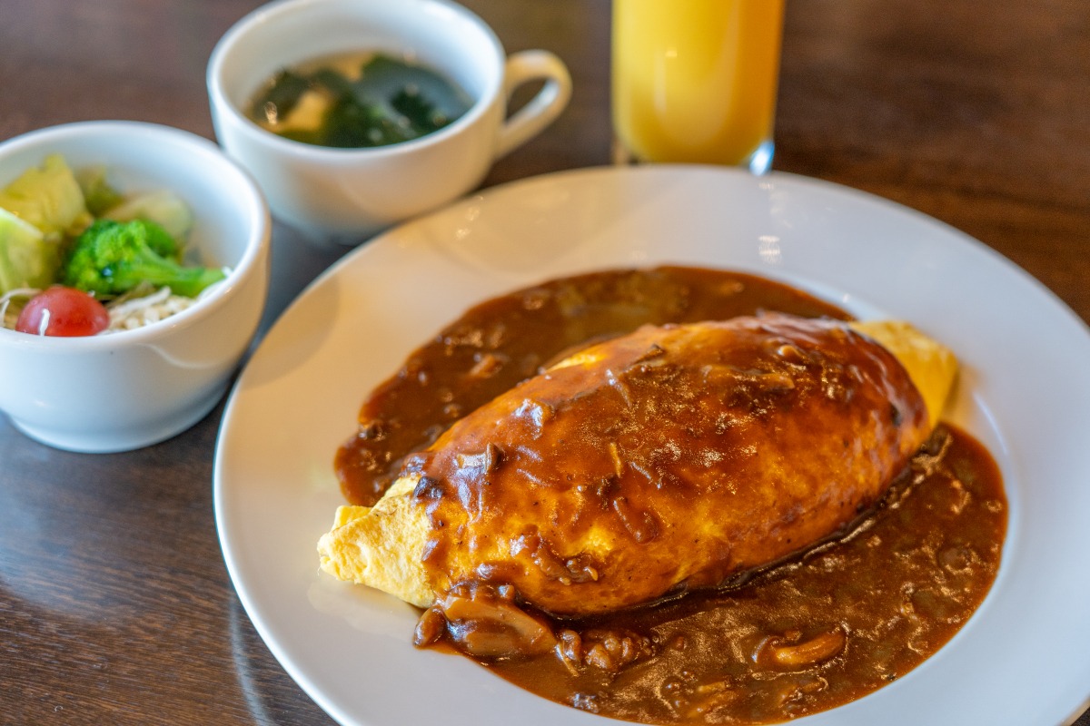 ドアを開けると棚いっぱいの漫画やフィギュアが迎えてくれる、多彩なメニューラインナップが評判の人気店。ランチタイムに訪れるほとんどの人が注文するというのが、国産牛肉100%の自家製ハヤシソースがかかったオムライス。きのこたっぷりの味わい深いソースと、ふんわりまろやかな卵のコンビネーションが抜群の一皿です。他にも10種類以上のパスタや日替わりランチもあり、何度も通って全メニュー制覇したくなる一軒です。