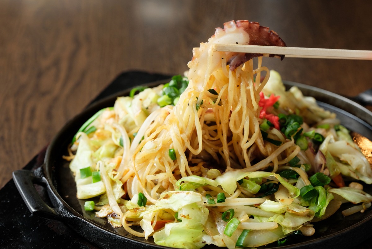 風光明媚な児島・下津井の新鮮なたこと、児島特産の塩とがコラボレーション! 瀬戸内海が凝縮された塩焼そばで、児島地区のお好み焼き店、居酒屋などで味わうことができます。