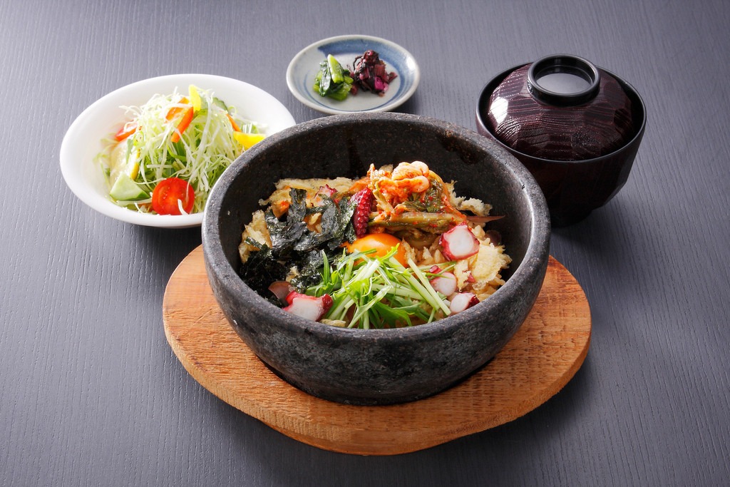 倉敷市下津井名物のタコ飯と石焼ビビンバが融合し、誕生した鷲羽山レストハウスの大人気メニュー。ジュージューとタコ飯が香ばしく焼ける音とピリ辛の味付けが食欲をそそります。瀬戸大橋が一望できる展望レストランで開放感につつまれながら、アツアツの石焼タコンバをぜひご賞味くださいませ。