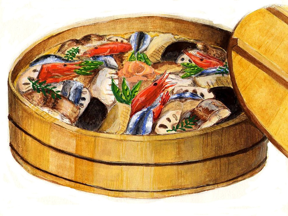 魚介類の刺身や野菜など、旬の食材を使って色鮮やかに仕上げられた寿司。使われる食材は季節に合わせて旬のものが選ばれ、見栄えのよさに定評があります。