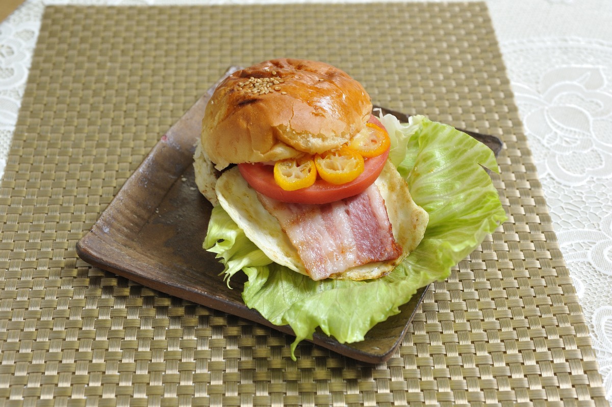 ジューシーな備前牛の赤身を使用したパテと、農協手作りのいちじくジャムを加えたデミグラスソース、きんかんのピクルスを備前米の米粉で作ったもっちりバンズで挟んだバーガーです。