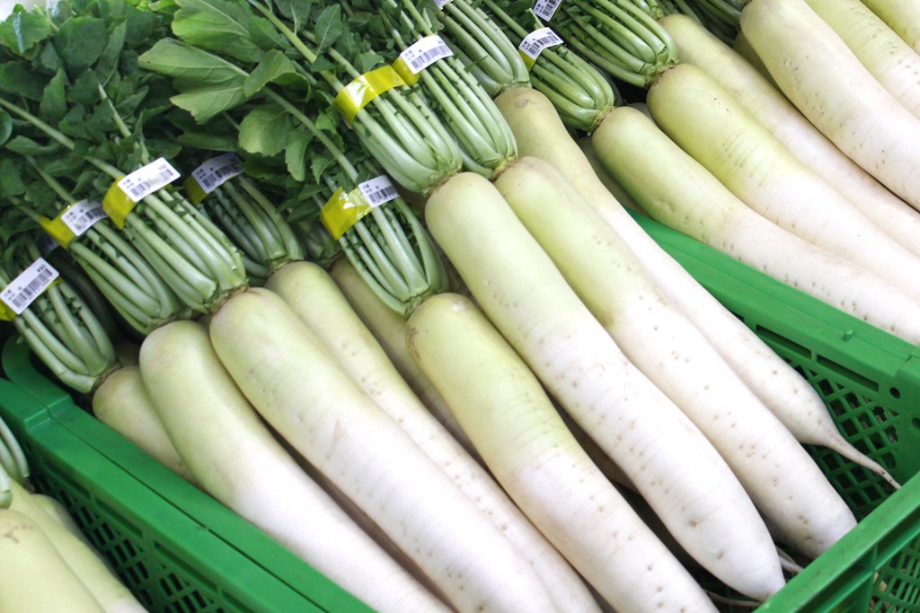 蒜山の広大な火山灰の土壌で育った甘くてみずみずしい大根。形・色つや・味の三拍子が見事にそろった名品です。