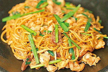 「ひるぜん焼そば」と同じ味噌ダレをベースにしながらも、辛味やパンチの効いた「お酒にあう」大人の焼そば。具材も鶏のかしわ肉使用の「ひるぜん」に対して、「よるぜん」は鶏の心臓・ハラミ・やげん軟骨を使用しており、さらにニラと切干大根がしゃっきりとした食感をプラスしています。