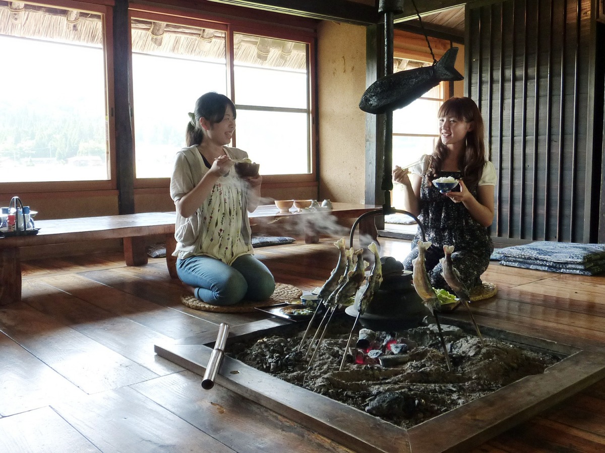 茅葺屋根と囲炉裏が懐かしい古民家食事処