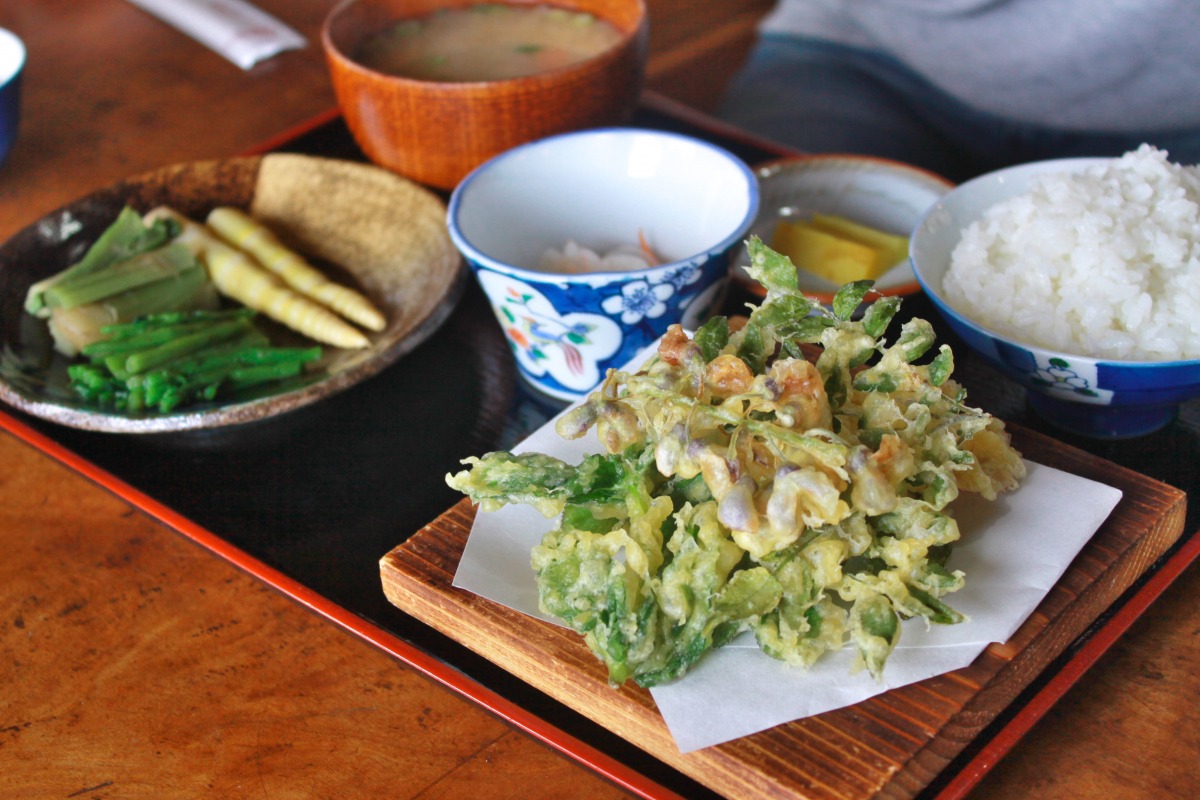 恩原高原の近くにある木地民家を移築した農村レストランで、たんご汁や山菜の天ぷらなどが味わえます。奥津温泉から北へ車で約20分です。