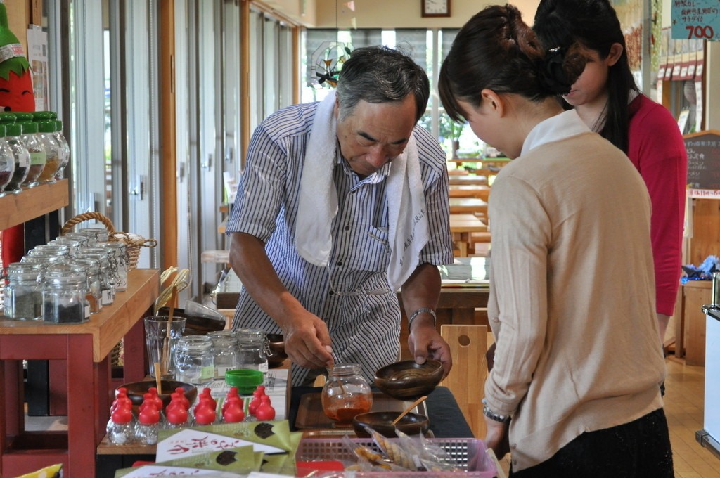 地元生産組合が丁寧に育てた真っ赤な唐辛子は、風味がよく、石引で作られた一味唐辛子は独特の辛さの中にもほのかな甘みを感じられます。また藁でひとつひとつを結んだ「藁ない唐辛子」は視覚的に見ても楽しめ、消臭効果もありますし玄関に吊るしておけば魔除けにもなると言われています。