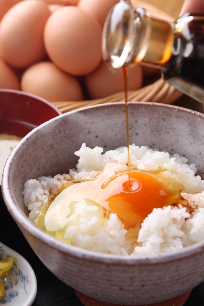 西日本最大級の養鶏場がある美咲町の産みたて卵と、町内で育てられた「棚田米」、地元の醤油を使用し、器も特産品「桜湖焼」を使うなど、美咲町産にこだわったひと品。美咲町出身の偉人・岸田吟香氏が「たまごかけごはん」を愛好し、日本中に広めたという説から誕生したご当地グルメです。ちなみに、美咲町では、卵の“黄色”と“幸福”をかけ合わせた言葉「黄福」な町づくりを推進中。町の文化と歴史がぎゅっと詰まったおいしいごはんを食べて幸福&黄福に!