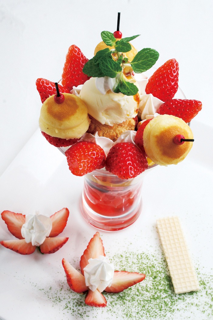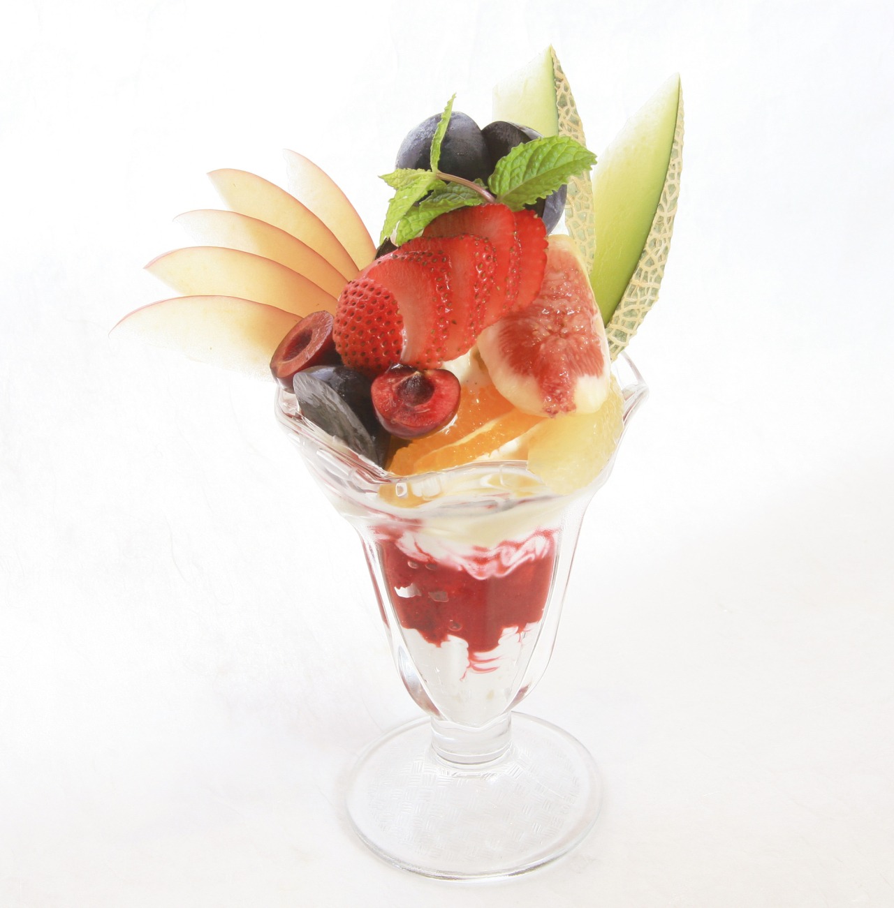 「晴れの国おかやま」は温暖な気候のため、白桃やマスカット、ピオーネをはじめとするおいしいフルーツがたくさん栽培されています。生で食べるのももちろんおいしいですが、アイスクリームやソースなどと盛り付けた「フルーツパフェ」は絶品。