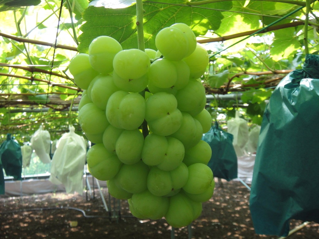 瀬戸ジャイアンツは豊かな甘さと香りの名品、マスカットオブアレキサンドリアの系列品種で、1979年に岡山のぶどう研究所「花澤ぶどう研究所」の花澤氏によって「グザルカラー」と「ネオ・マスカット」をかけ合わせて作られました。