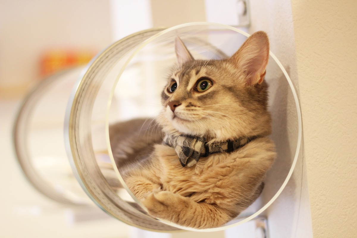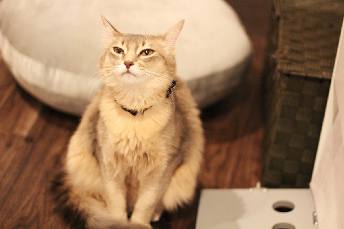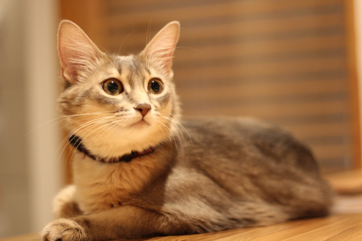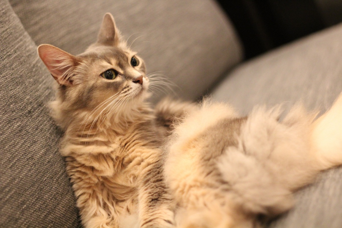 イギリス原産のアビシニアンの長毛種「ソマリ」は、狐のようなフサフサの尻尾とアーモンドアイが特徴。