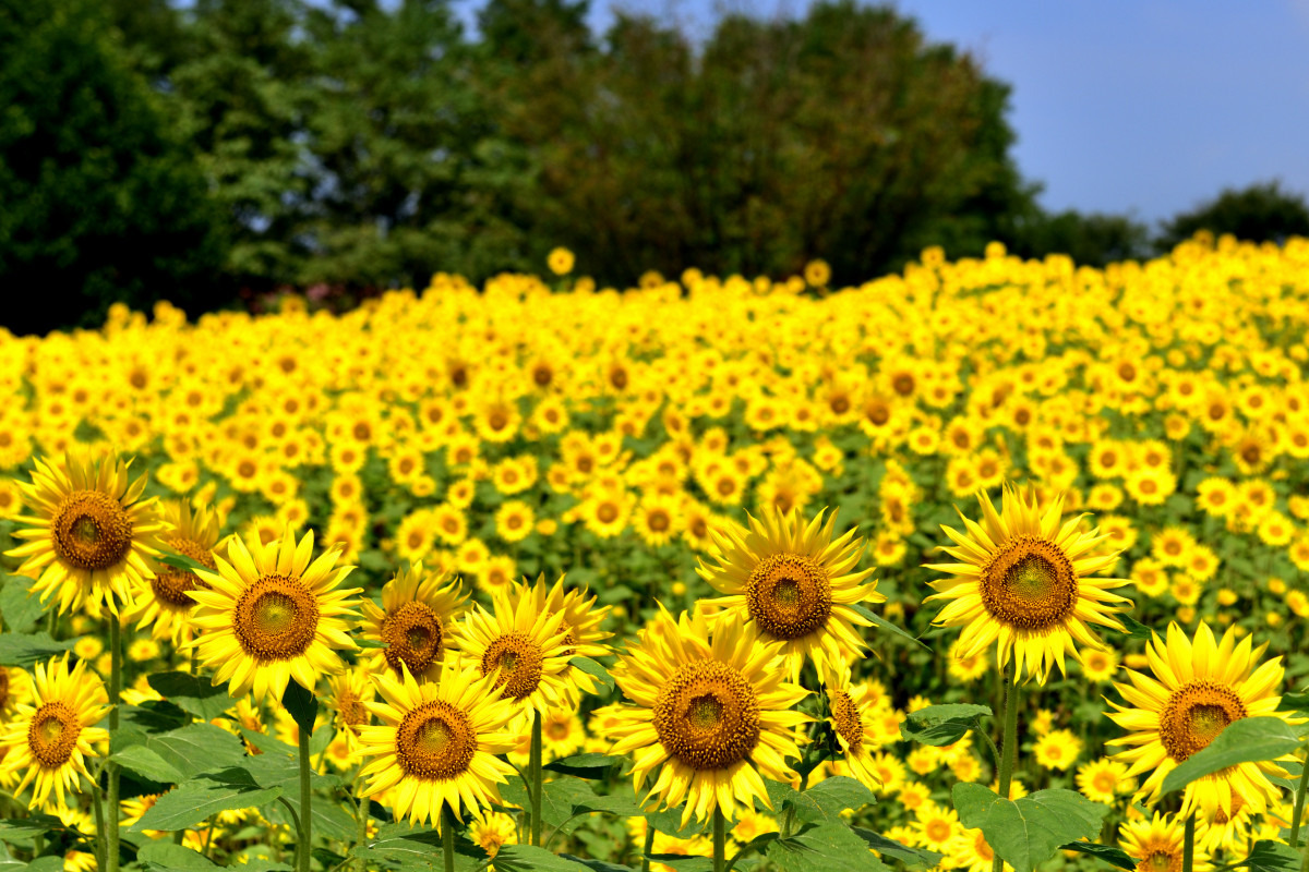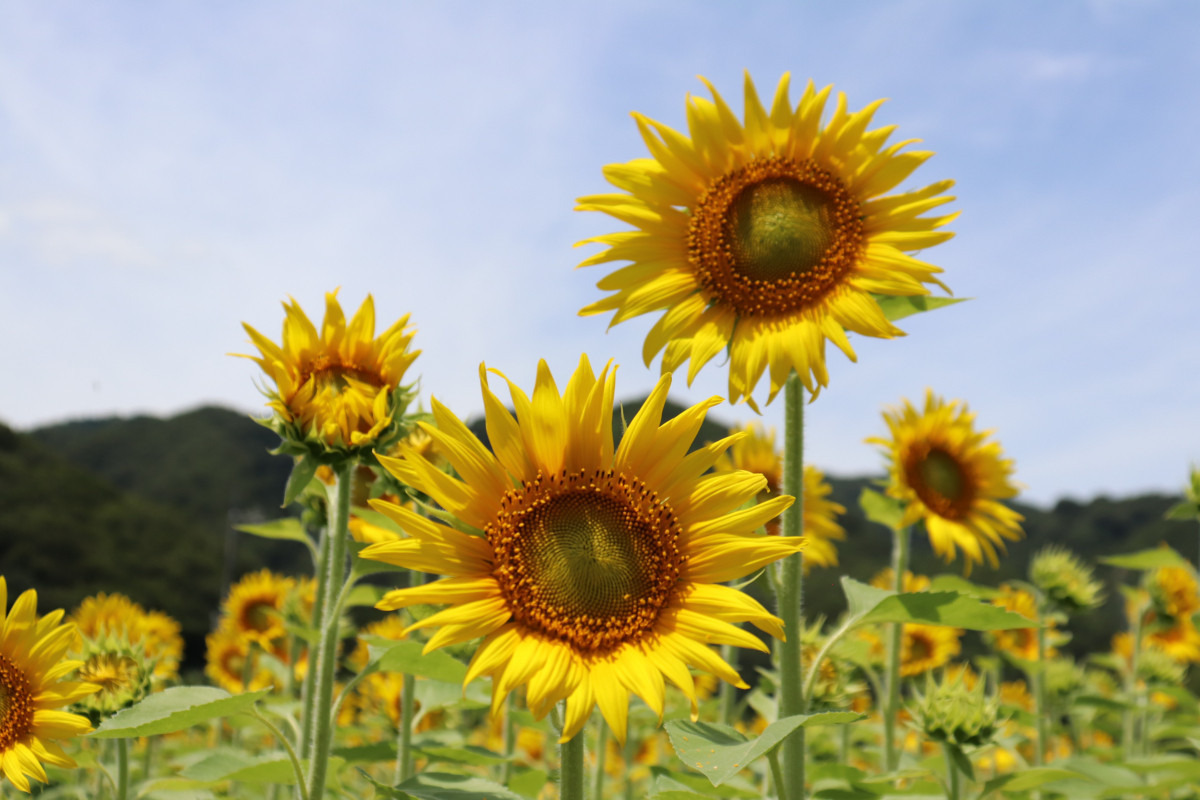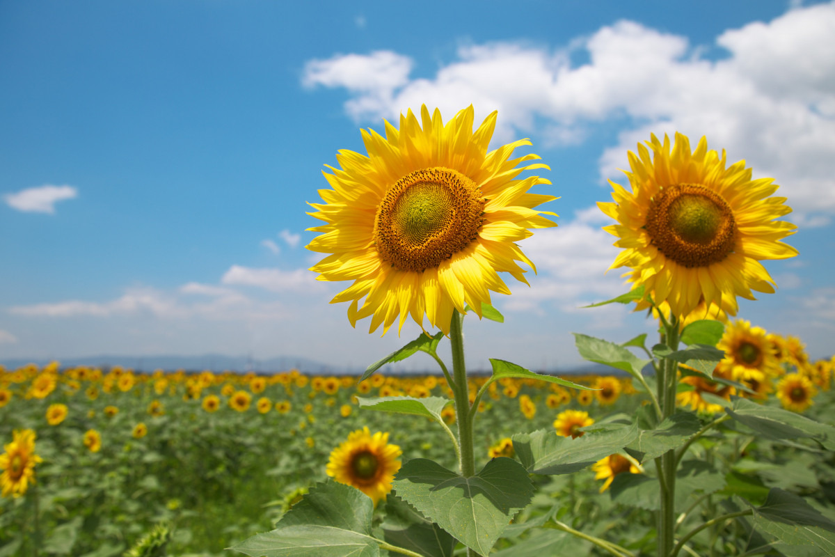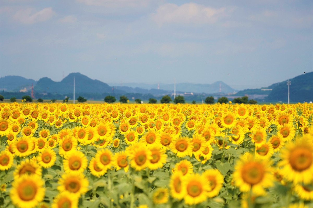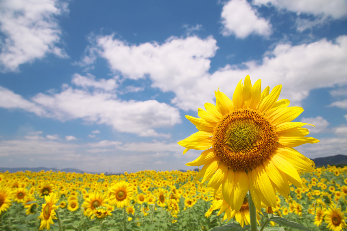 見ているだけで気分があがる夏の花、ひまわり。青空や緑の大地にも映えるビタミンカラーに元気をもらえます! 広大な干拓地や緑に囲まれた高原、テーマパークや天空の花畑など、岡山のひまわりスポットをご紹介。