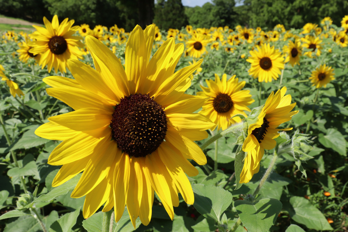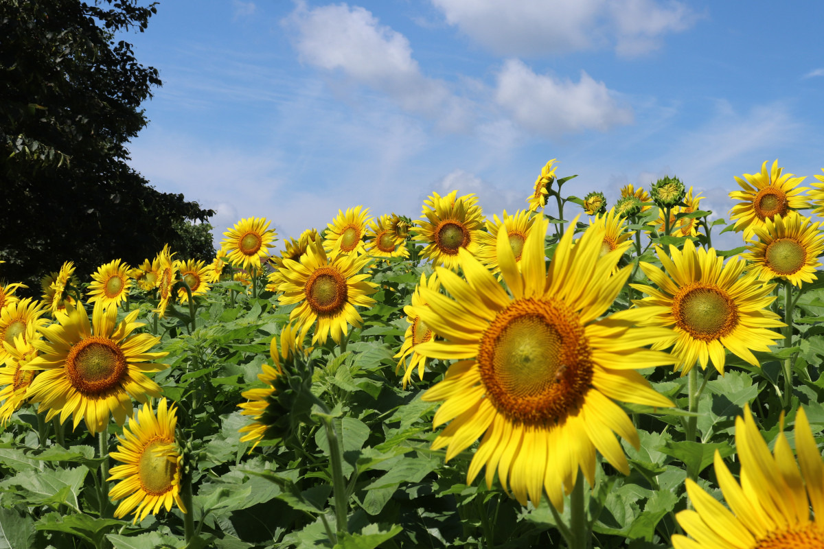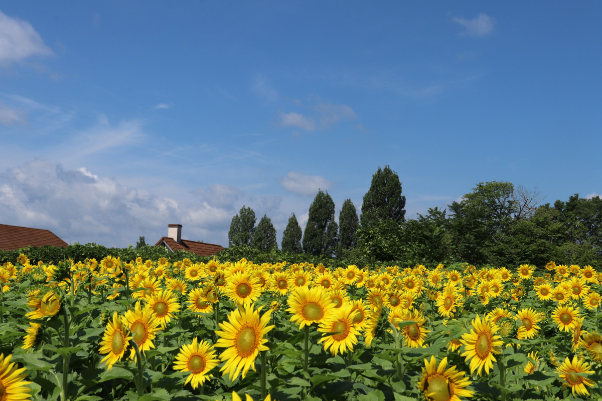 ドイツの農村をイメージした緑に囲まれたテーマパークでは、広大な園内では多種類の花が栽培され、四季折々の花が楽しめます。季節ごとに表情を変える花畑は一見の価値あり! 7月中旬~9月中旬にかけては2種類約3万本のひまわりが見頃を迎えます。公式サイトやSNSで随時開花情報も発信されています。