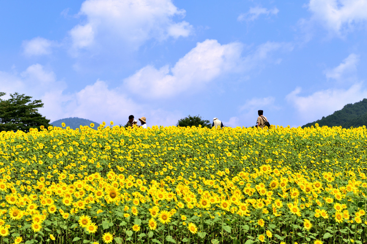 美作市の標高350mの高原にある3ヘクタールのひまわり畑です。青空に映える30万本のひまわりは圧巻で、その規模は岡山県北最大級。開花時期にあわせて開園し、期間中は様々なイベントも実施されます。