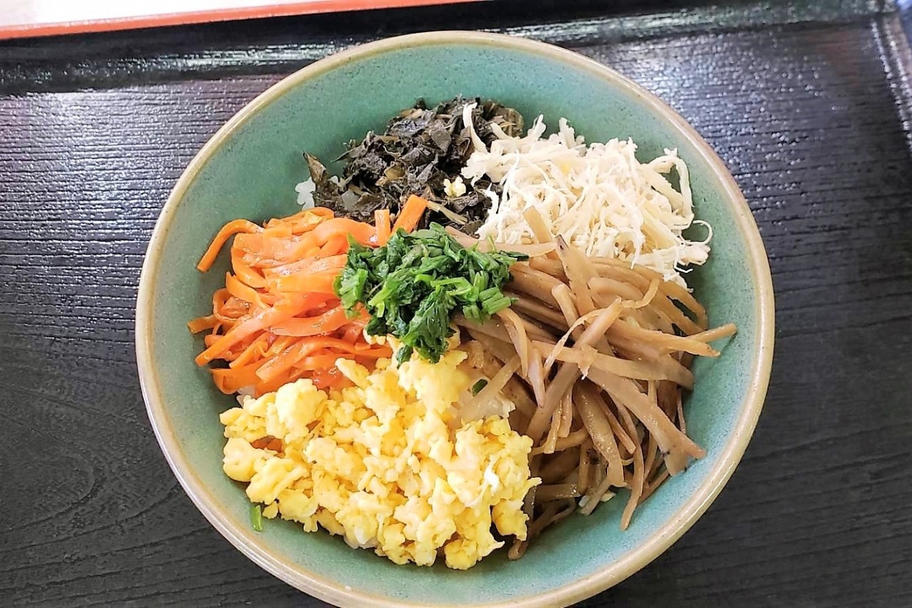 うどんを中心としたメニューを提供しています。定食のおかずには地元野菜を使用。また、文化庁の「100年フード」に認定された「くさぎ菜のかけめし」も食べられます。