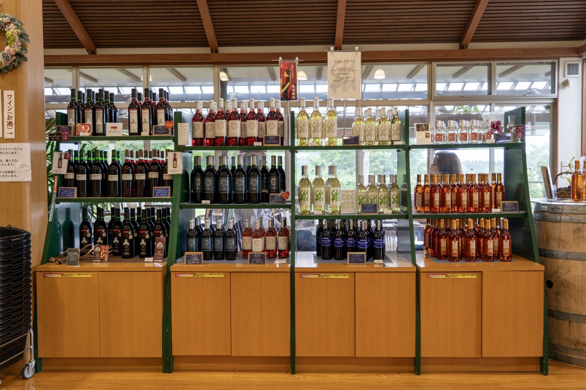 蒜山高原でヤマブドウを使ったワインを造っている会社です。店内での試飲のほか、ワインに合わせたチーズ、ピザなどの軽食を提供しています。