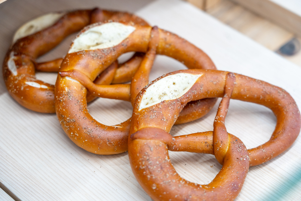 サワドゥーパンとアートの店。サワドゥーパンとは酵母と乳酸菌による小麦の発酵でできたパン。ドイツで食べてその味に感動したという店主が、ドイツ人直伝のレシピと国産小麦で作る看板商品のプレッツェルは、外側はパリッ中はもっちりとした食感。独特の香りと味もクセになります。店内のカフェスペースでは、濃厚なクリームチーズと刻みネギを添えた「プレッツェルセット(プレーンor黒胡椒)」や、ピデという平たいパンにオランダ産チーズとパプリカを挟んで自家製バジルソースでいただく「サンドセット(トマトスープとオーブンポテト付き)」など、ここでしか味わえないメニューが楽しめます。テイクアウトも可能です。