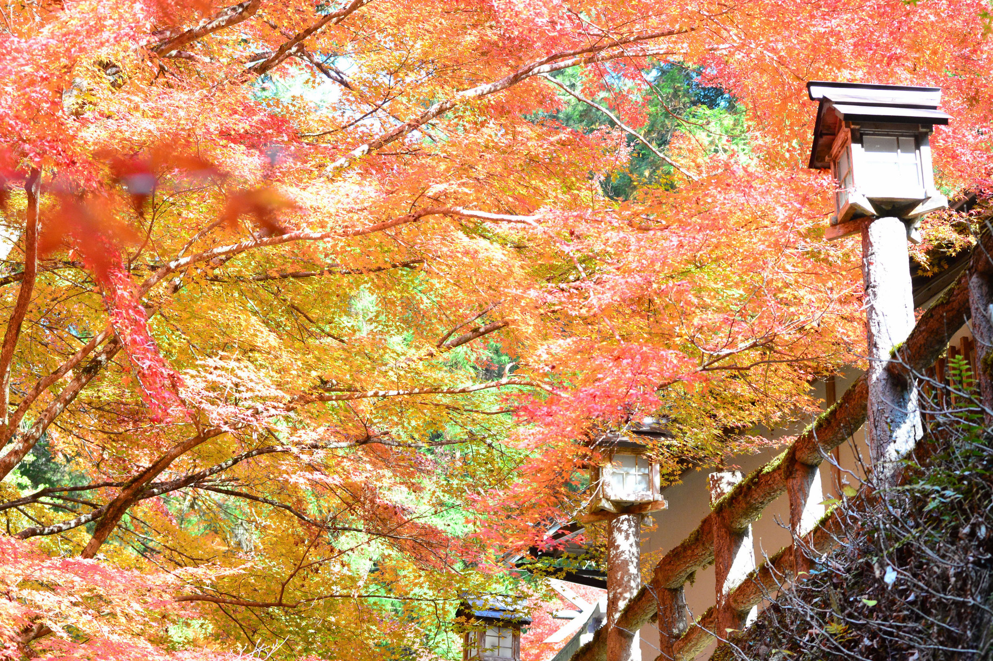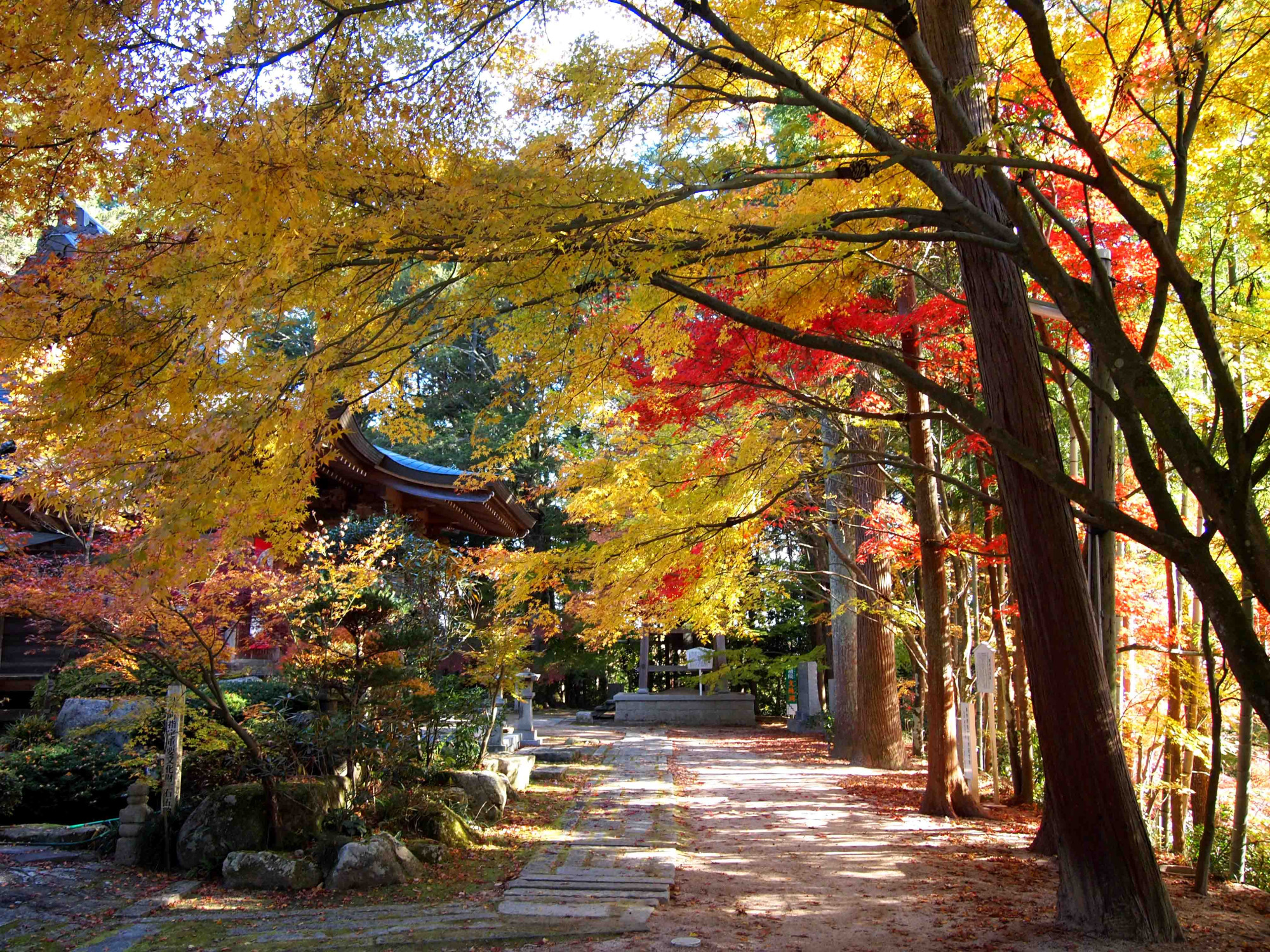 色づいた木々の中を歩けるお寺や、山全体が美しく染まる県下最高峰の霊山、岩肌を落ちる流水と一緒に紅葉が見られる滝など、秋に訪れたいおすすめスポットはこちら。