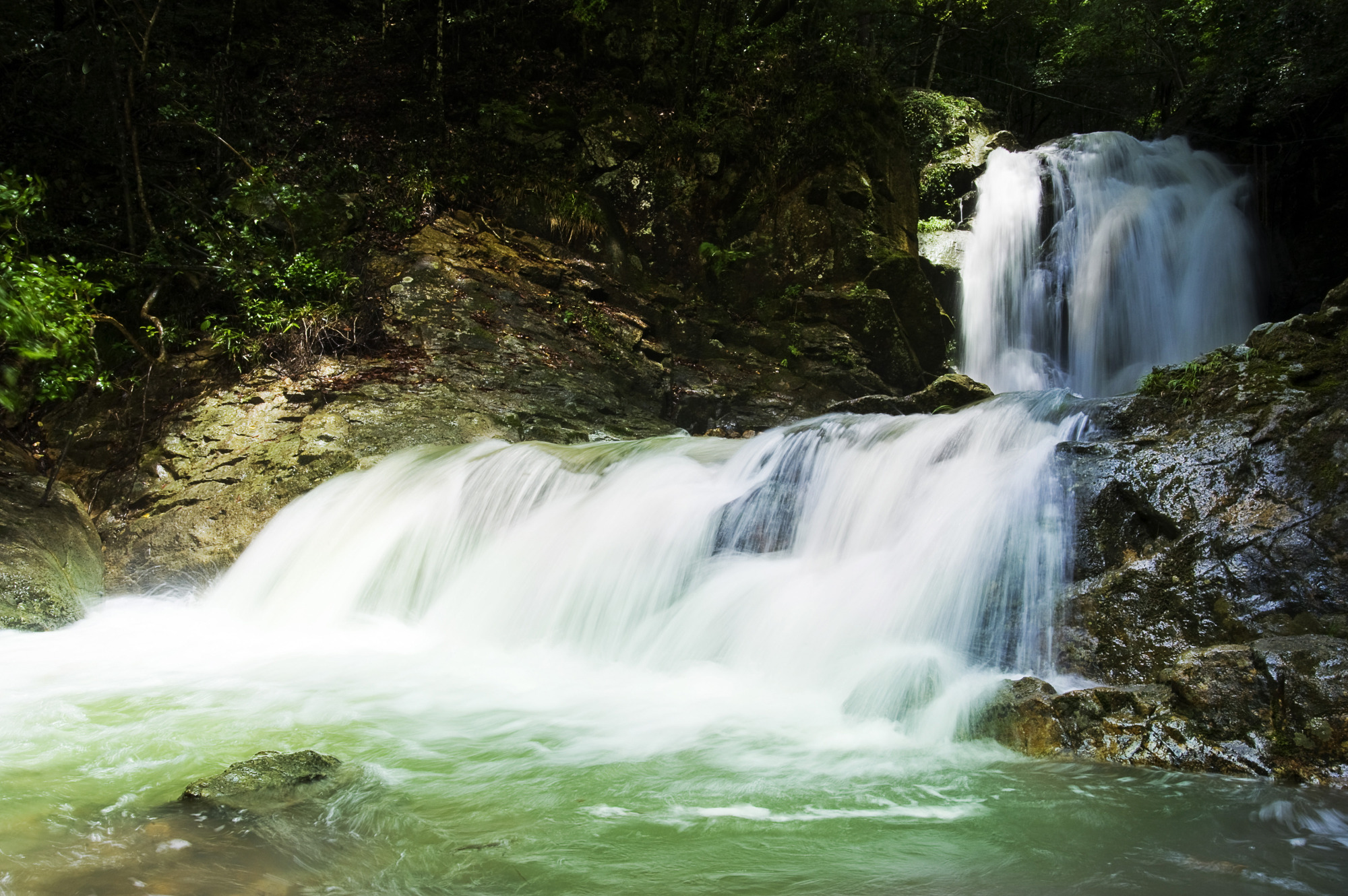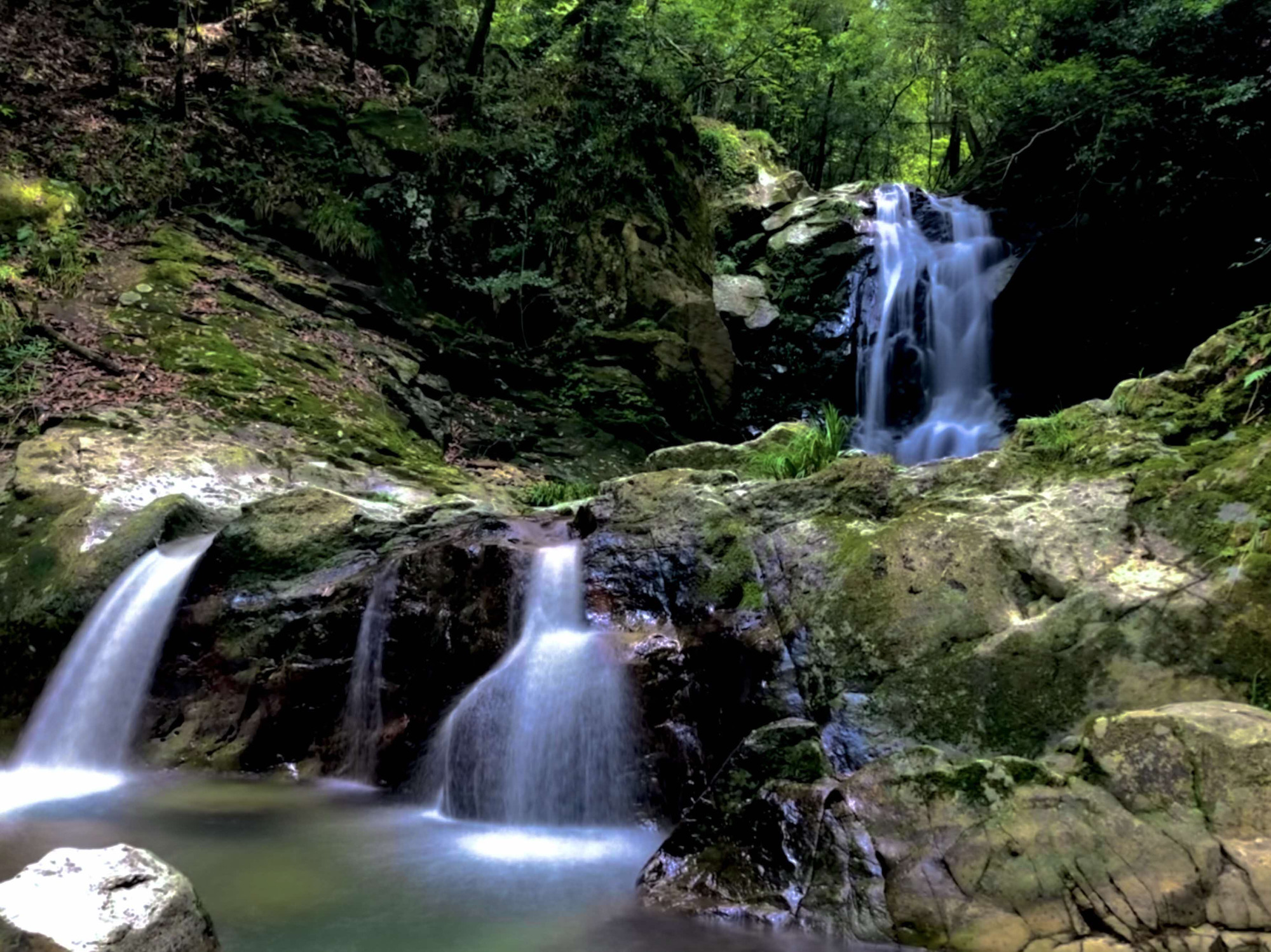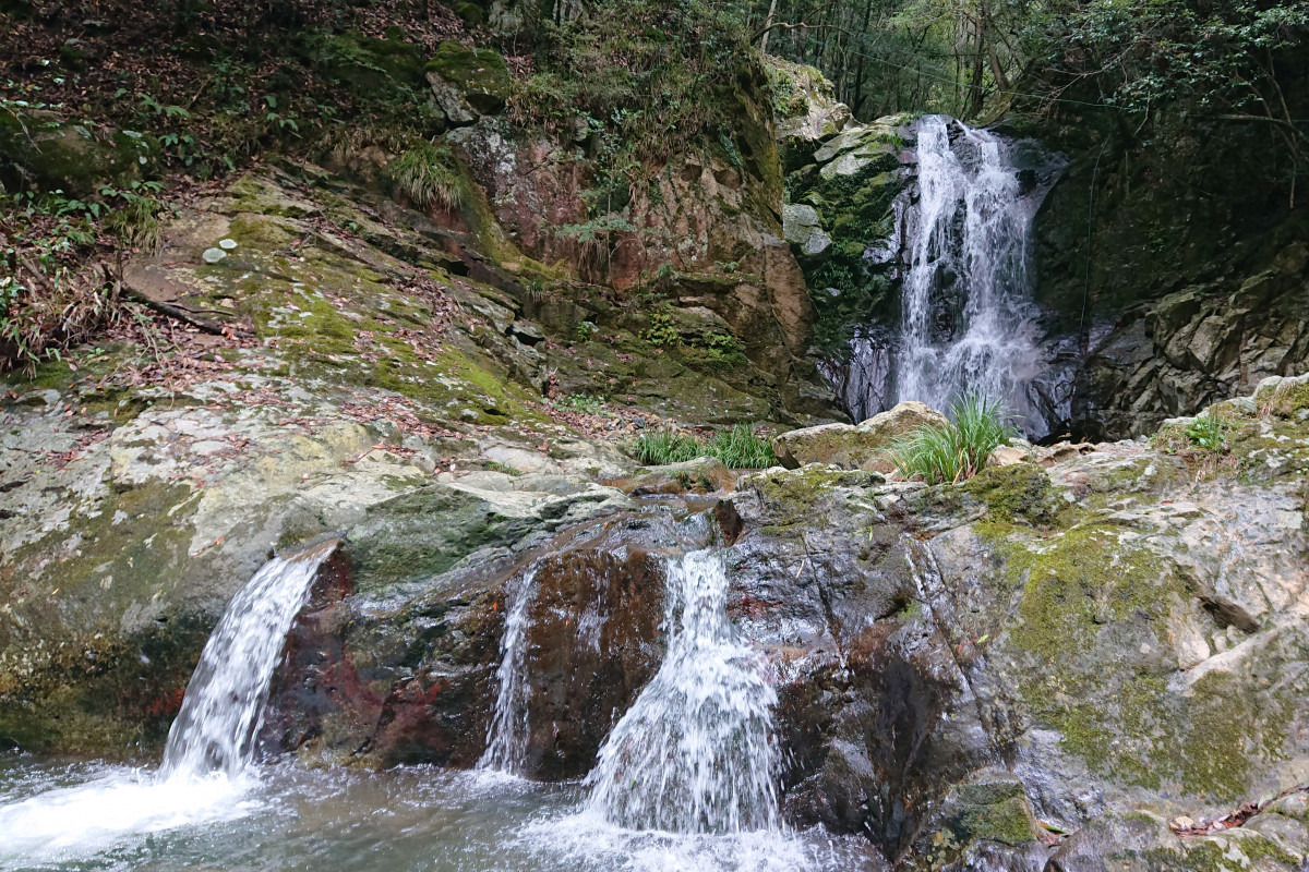 滝の宮とも称される「天石門別(あまのいわとわけ)神社」の神域にある滝。大小二つからなり、上の方の大きい滝を雄滝、下の方を雌滝といいます。滝壷の下流は“琴弾の瀬”と呼ばれており、そこから名付けられました。夏は天然の涼場となり、秋は紅葉の美しいことで知られています。