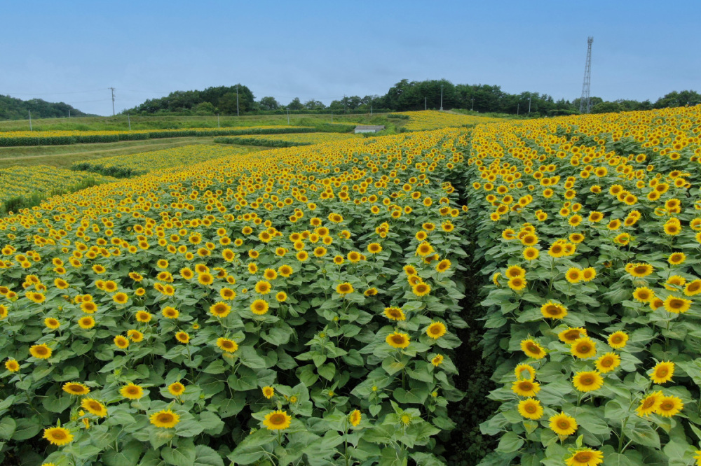 標高350mの高原にある3ヘクタールのひまわり畑です。青空に映える30万本のひまわりは圧巻で、その規模は岡山県北最大級。開花時期にあわせて開園し、期間中は様々なイベントが実施されています。