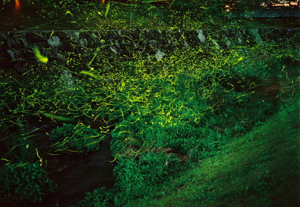 湯郷温泉郷近くの河川公園。ゲンジボタルやヘイケボタルが乱舞し、絶好のホタル観賞スポットです。蛍の舞う初夏には提灯を下げて、下駄の音をならしながら遊歩道をあるく宿泊客の姿が見られます。
