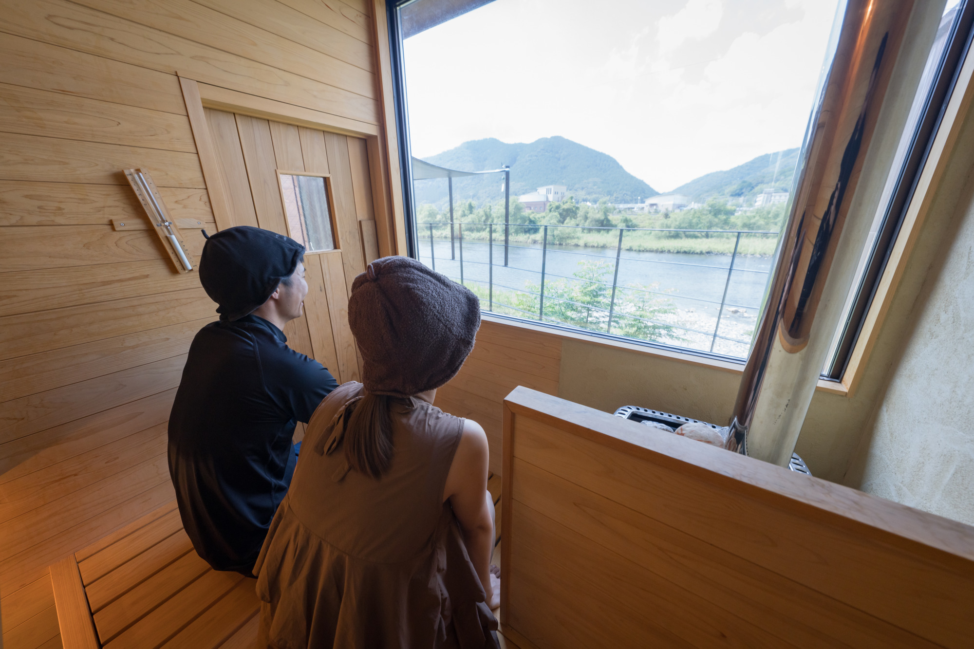 湯郷温泉の総元湯である日帰り温泉施設では、熱したサウナストーンに一定時間ごとに水をかけ、蒸気を発生させるオートロウリュによるドライサウナが利用できます。ヒノキの大浴場のある「動の湯」、石造りの「静の湯」どちらにもテレビ付きのサウナを完備。岡山県北の名湯と併せて気軽に楽しめます。