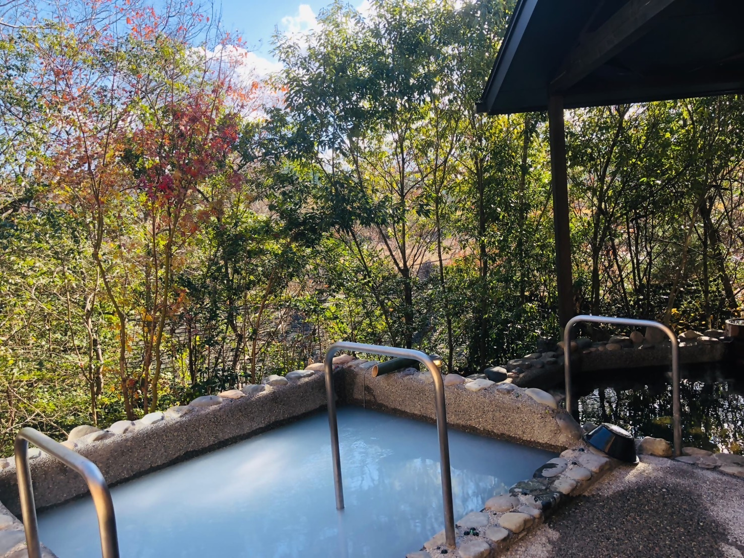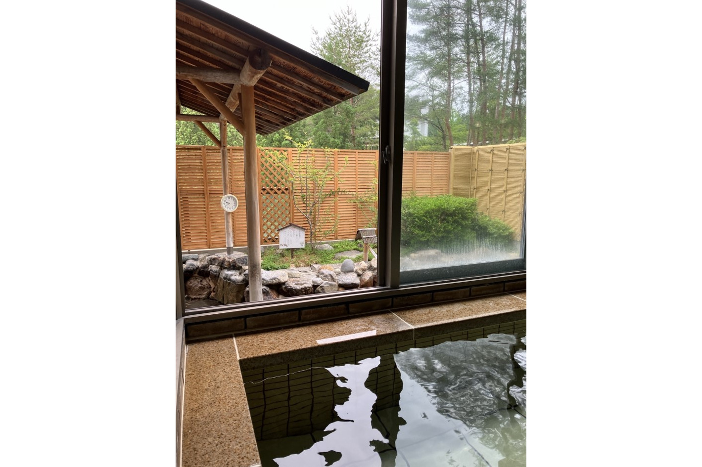 高原ならではの自然豊かな場所に位置し、サウナを利用した後は露天風呂のすぐ側で外気浴が可能。絶景を堪能しながらクールダウンができます。地下1,500mから汲み上げている温泉はアルカリ性のトロトロとした泉質がお肌に良く芯から温まると好評で、水風呂にも温泉が使われています。