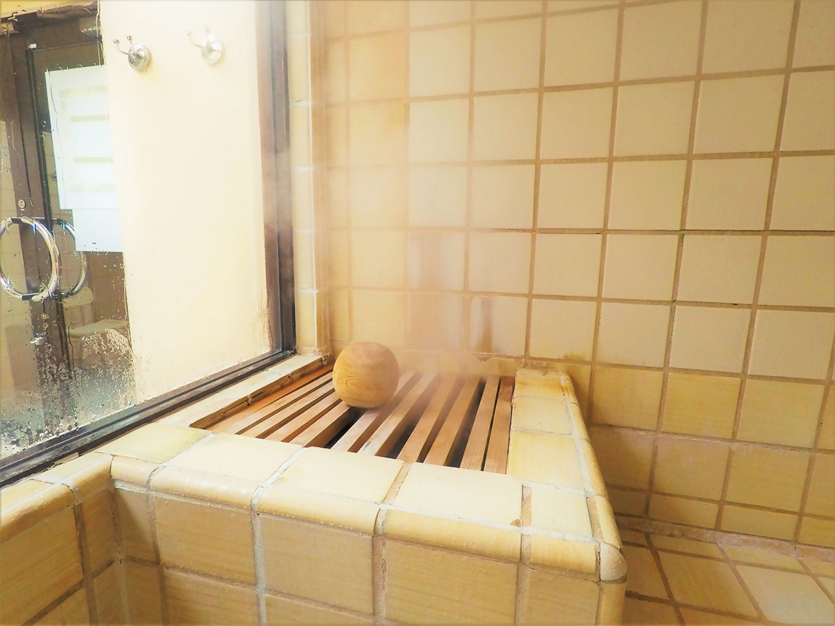 湯郷温泉ではここにしかないスチームサウナは、リラックスしながら美容と健康をサポート。ドライサウナよりも温度が低く(約40~50℃)、湿度がほぼ100%なので、息苦しさを感じにくく、初心者にもおすすめです。蒸気が肌を潤し、毛穴の奥の汚れを落とすことで、くすみ改善や肌のトーンアップも期待大。発汗によって体内の老廃物や毒素を排出し、むくみや疲労感の軽減にも役立ちます。また、高湿度の環境が筋肉の緊張をほぐし、ストレス軽減にも効果的です。