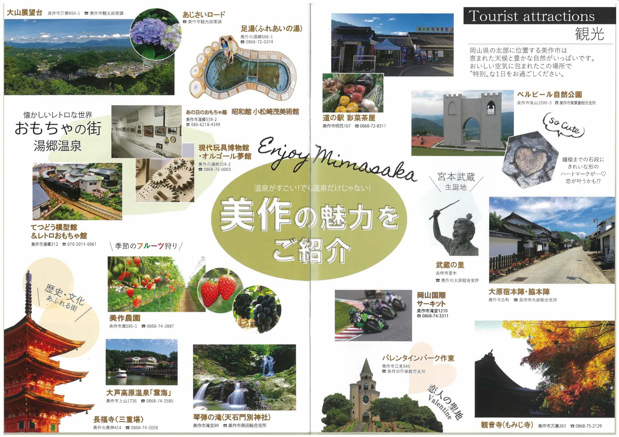 このページを見ている人は、こんなページも見ています 湯郷温泉の日帰り入浴スポット8選 https://www.okayama-kanko.jp/mimasaka/feature/yunogouhigaerispa 美作市の紅葉スポット3選 https://www.okayama-kanko.jp/mimasaka/feature/mimasakakouyou 湯郷温泉のランチガイド https://www.okayama-kanko.jp/mimasaka/feature/yunogouonsenlunch 美作市の絶景スポット9選 https://www.okayama-kanko.jp/mimasaka/feature/mimasakazekkei 映画『風の奏の君へ』美作市ロケ地めぐり https://www.okayama-kanko.jp/mimasaka/feature/kazenokanade/page 美作市のものづくり体験スポット7選 https://www.okayama-kanko.jp/mimasaka/feature/mimasakamonodukuri 美作市の特産品・お土産 https://www.okayama-kanko.jp/mimasaka/feature/mimasakasouvenir 美作市のランチガイド https://www.okayama-kanko.jp/mimasaka/feature/mimasakalunch 岡山のお茶処・美作市でティーツーリズムを楽しもう https://www.okayama-kanko.jp/mimasaka/feature/mimasakateatourism 美作市のカフェガイド https://www.okayama-kanko.jp/mimasaka/feature/mimasakacafe 美作市のコテージ&キャンプ場6選 https://www.okayama-kanko.jp/mimasaka/feature/mimasakacamp 美作市のサウナスポット https://www.okayama-kanko.jp/mimasaka/feature/mimsakasauna